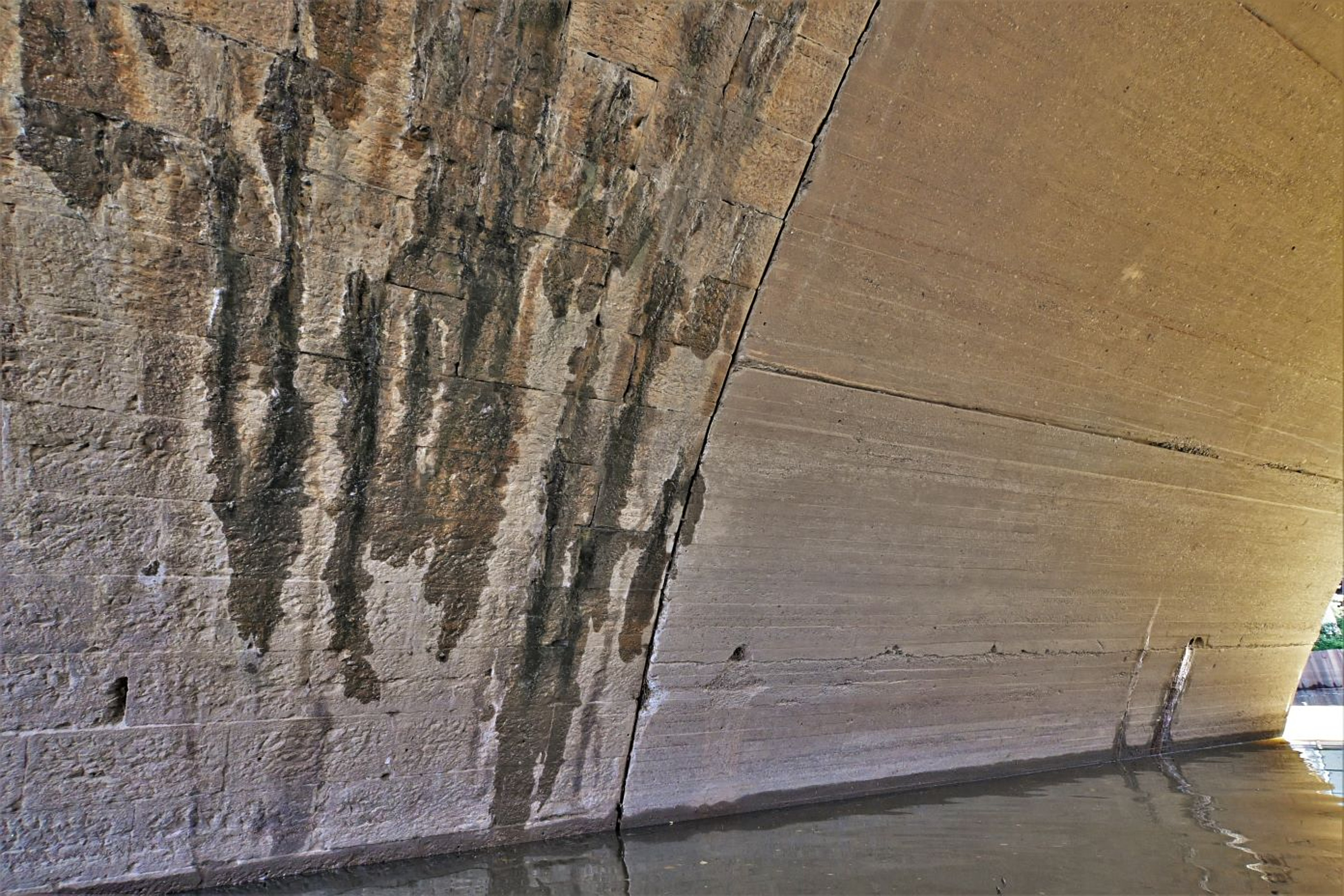 Former Indianapolis & Cincinnati, later Big Four Railroad bridge over Mill Creek, looking at the original aqueduct stone arch underneath. Photo provided by Bill Oeters.