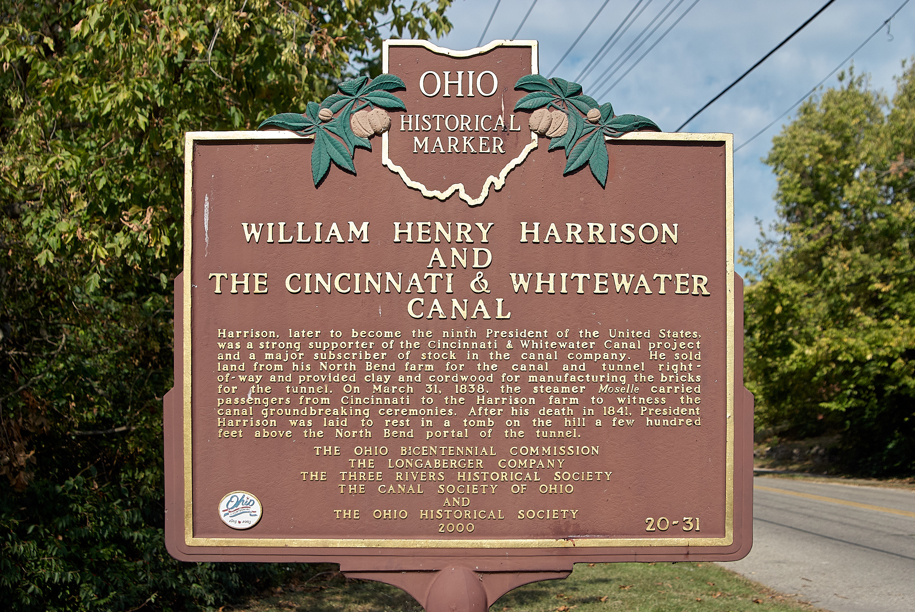 Historic plaque describing the old Cincinnati & Whitewater Canal tunnel in Cleves