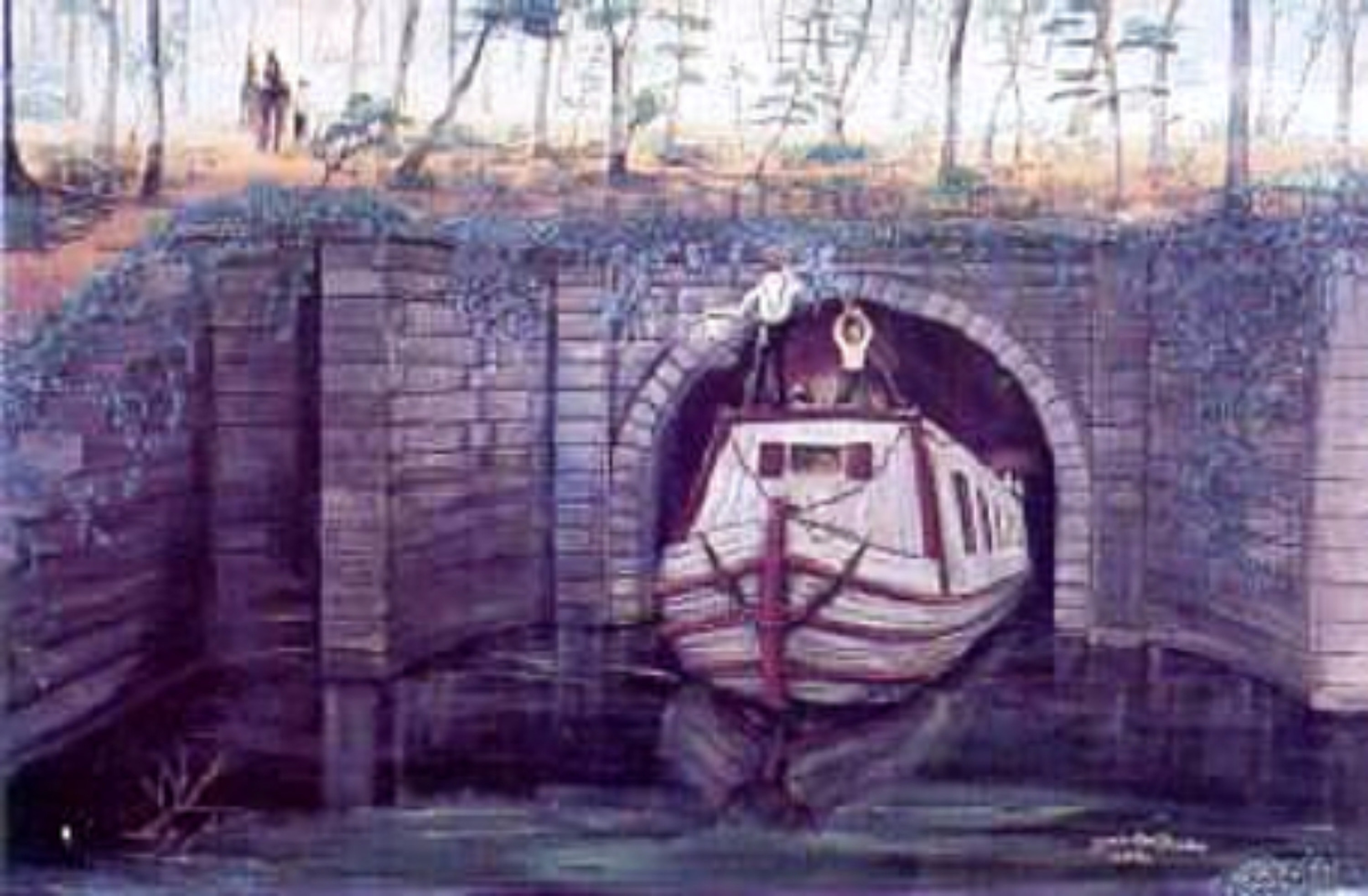 An artist's rendition of the canal tunnel when it was in use. While the railroad would use the tunnel until 1888, it likely only allowed room for one track, impeding capacity expansion.