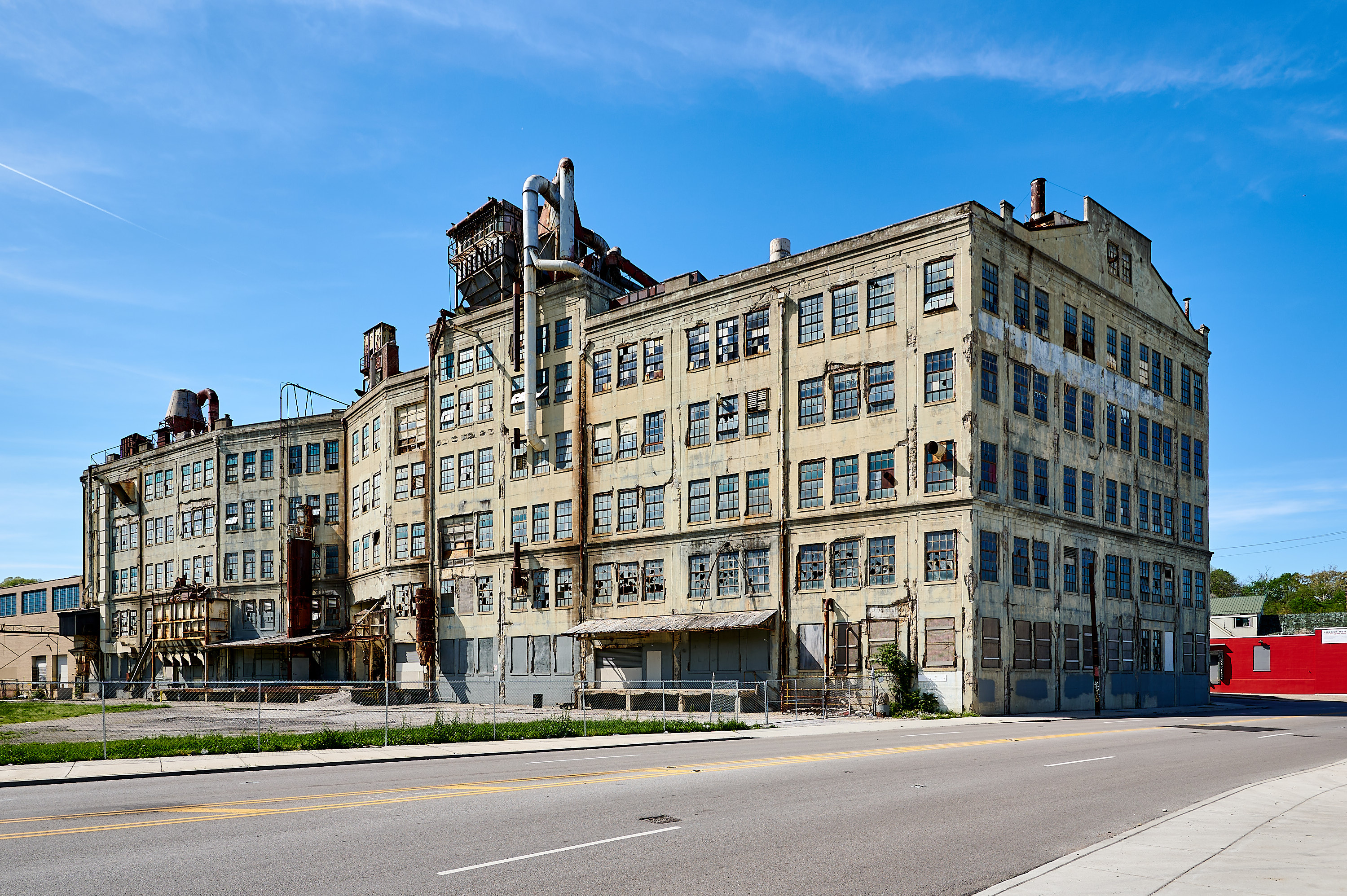 The Lunkenheimer Valve Company factory on Beekman Avenue, which had spur tracks from the CH&D and Cincinnati & Westwood serving it. Looking northwest across Beekman from the intersection with Queen City Avenue.