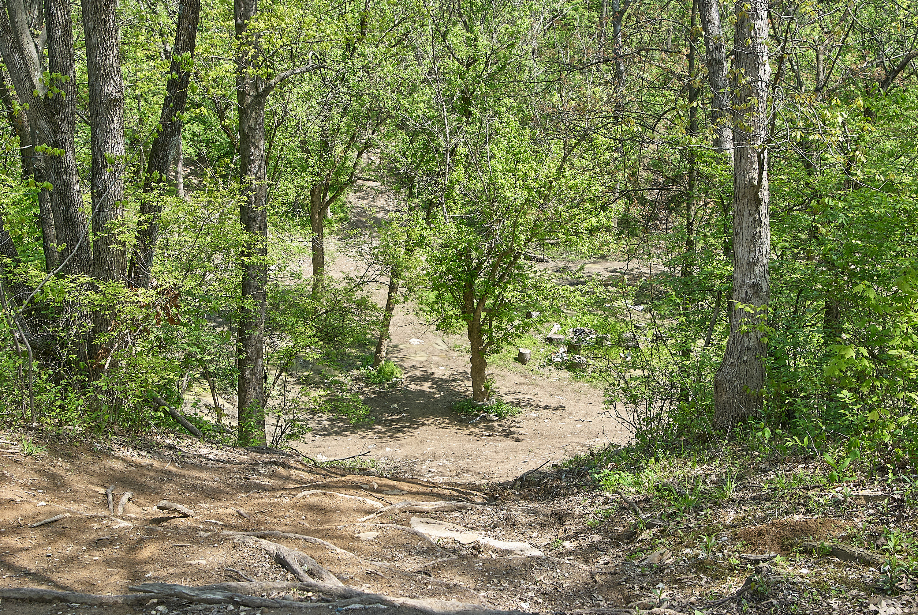 Looking down the north slope of the Cincinnati & Westwood fill from the last photo. This is a good 50 feet above the valley below.