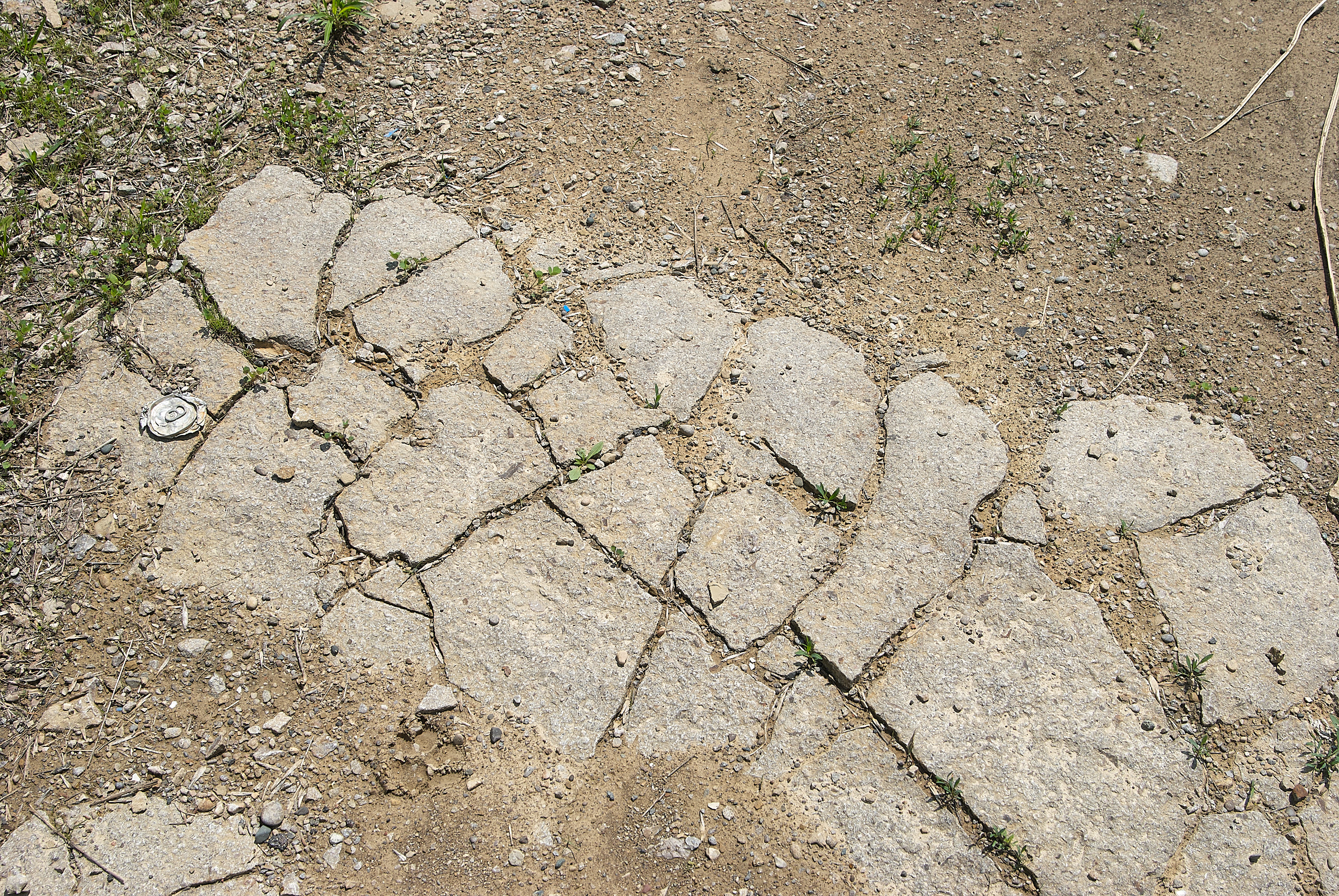 Exposed limestone beds on the Cincinnati & Westwood right-of-way. This shows how easy it is to quarry this local Ordovician limestone, as it's already broken up into decent size pieces. These stones, which are exposed all around the City's hilltop communities, and was used extensively for foundation and retaining walls, is loaded with brachiopod, bryozoan, and criniod fossils.
