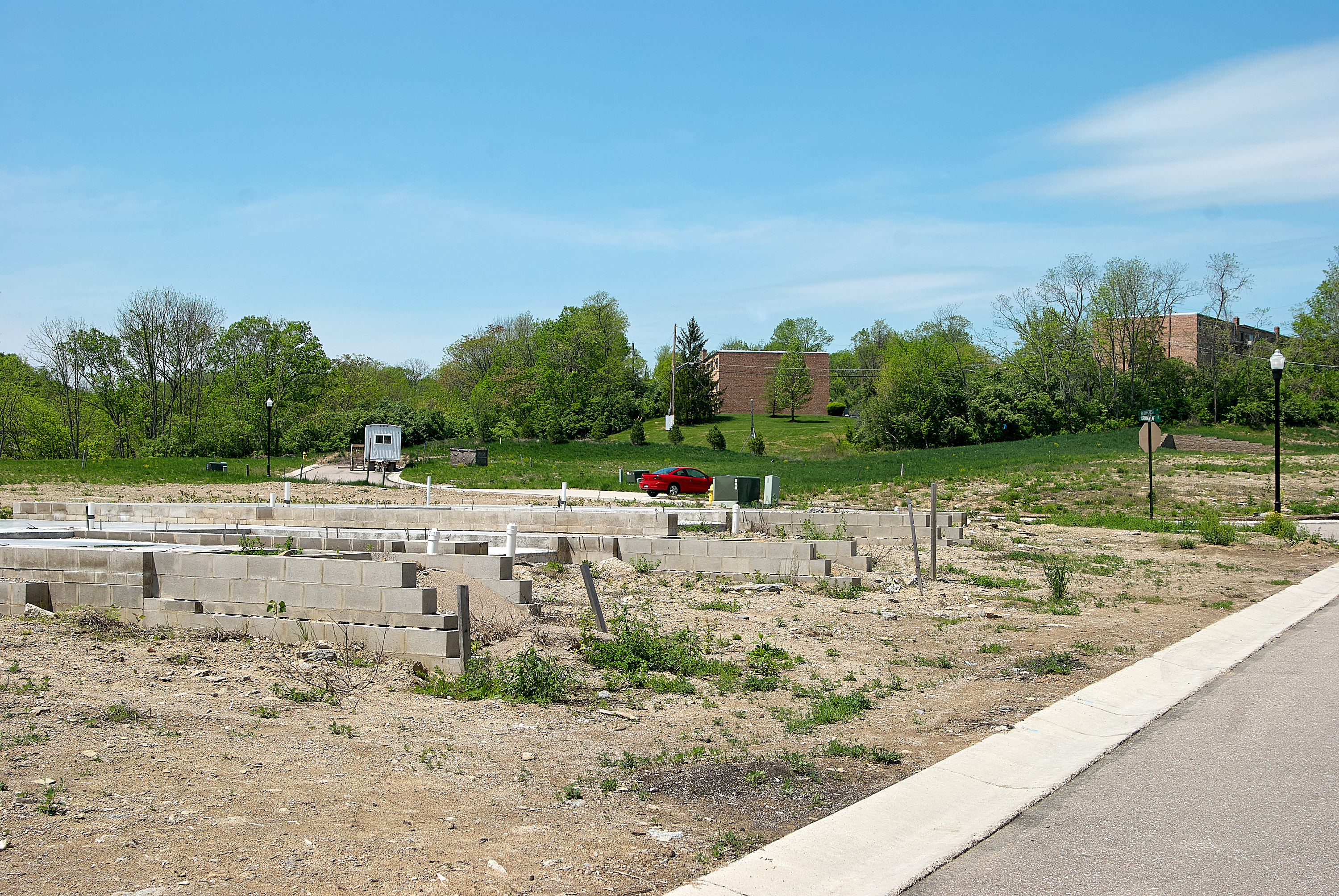 Cincinnati & Westwood right-of-way at the Bluffs at Woodcrest subdivision, looking northwest. From here up to Lafeuille Avenue, several apartment complexes from the 1960's and 70's were built on the hillside and have erased the Cincinnati & Westwood's roadbed. The trailer at the end of Turningleaf Court at the left center marks the approximate location of the ROW as it headed west from here.