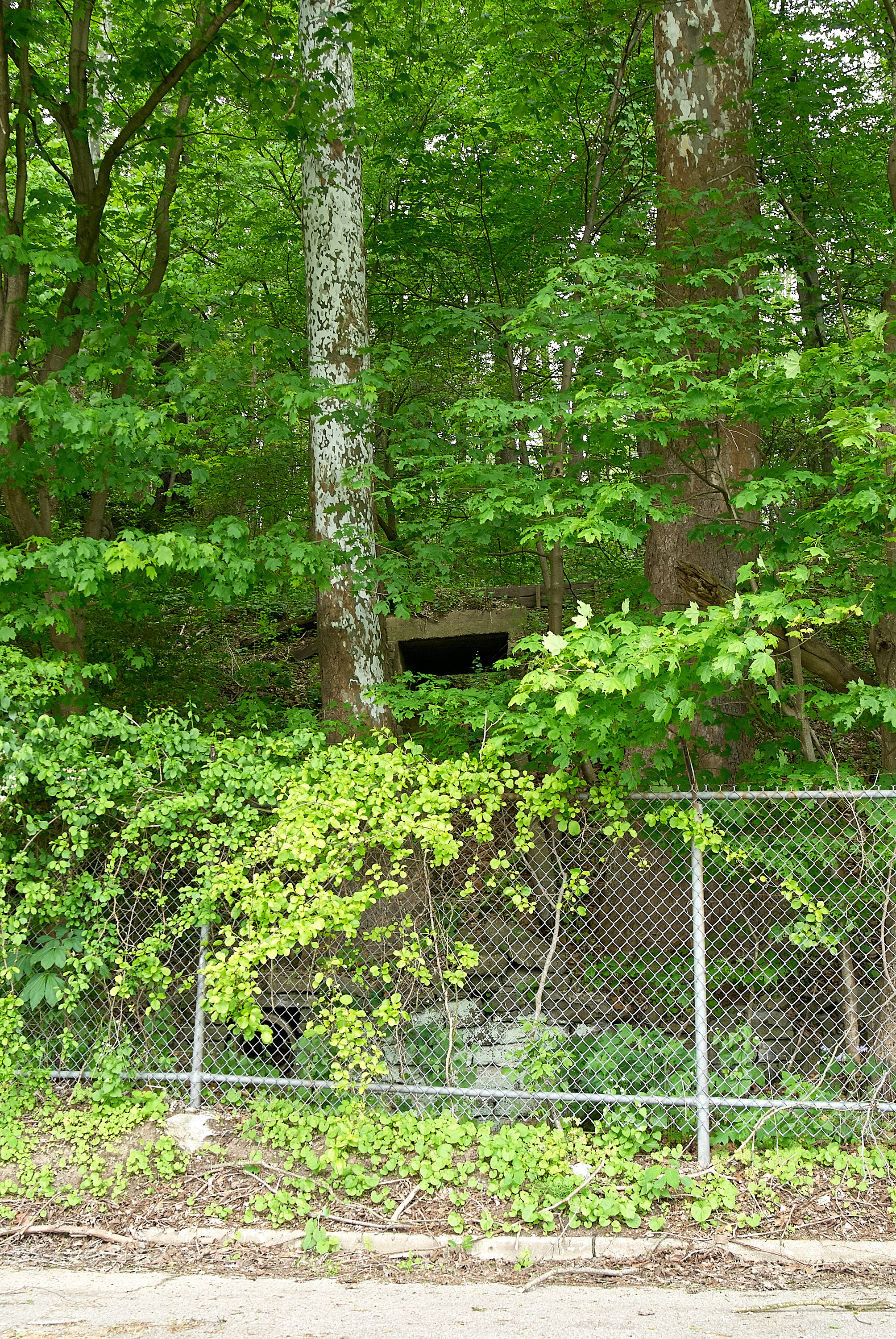 CG&P culvert as viewed from an abandoned stretch of Kellogg Avenue near Salem Avenue, looking southeast. The IR&T Suburban Traction and Cincinnati & Eastern lines ran on this stretch of road at the bottom of the photo, literally a stone's throw from the CG&P.