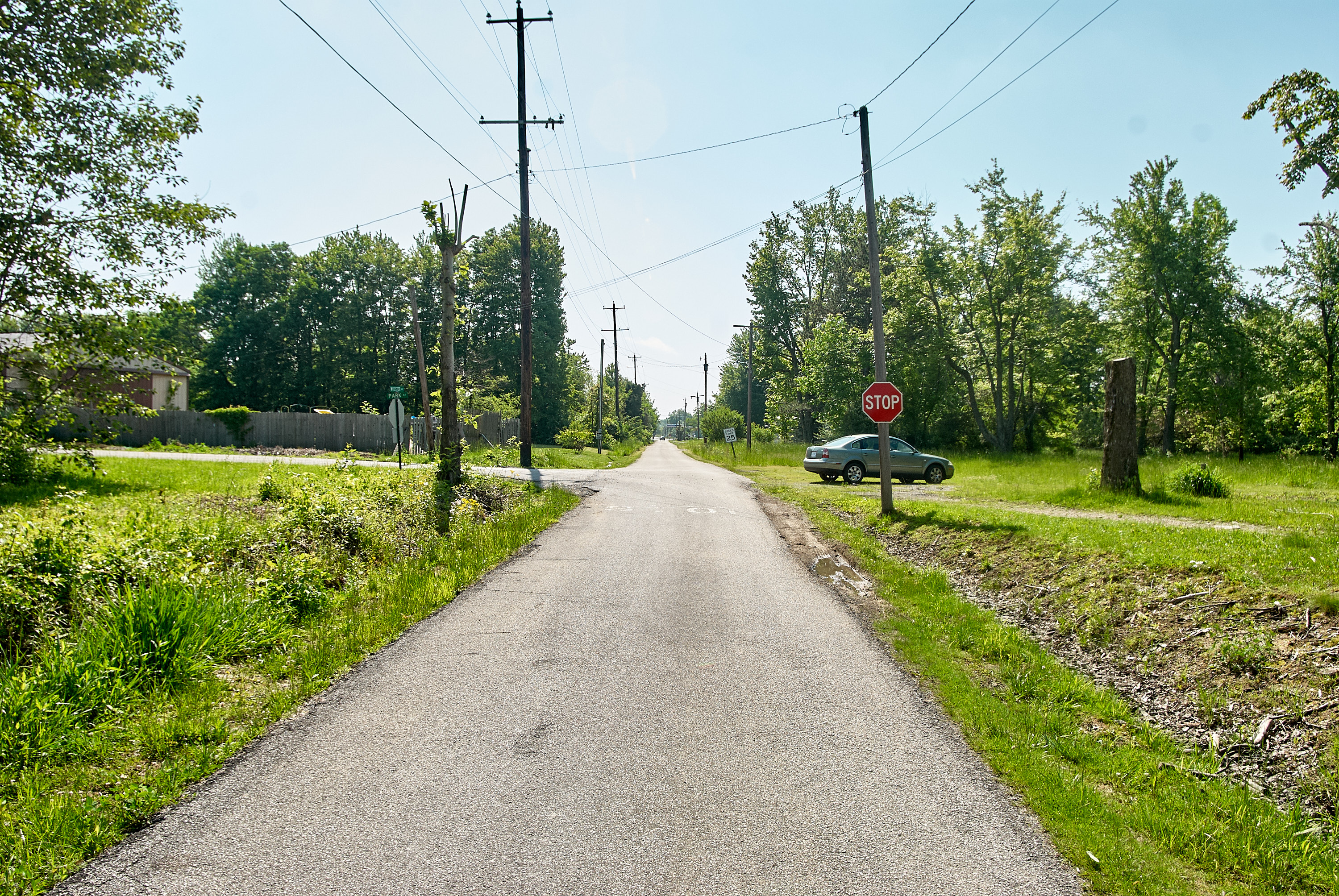 CG&P ROW throuh East Hamersville, looking east along Wooster Avenue towards the intersection with Park Street. The East Hamersville station is just out of frame to the right.