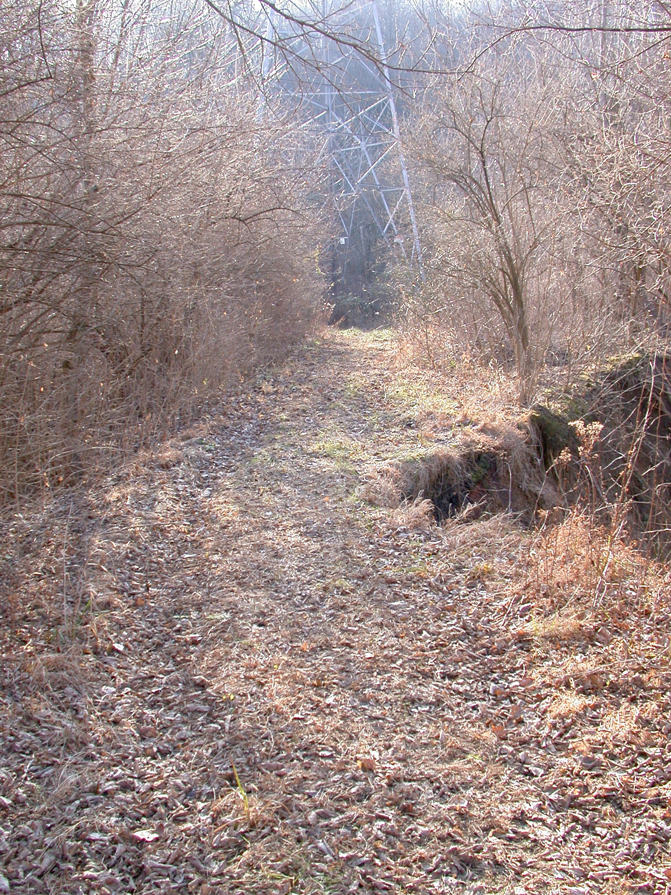 Severe errosion of the C&LE ROW above the culvert from the last few pictures south of Laboiteaux Woods in College Hill, looking southwest.