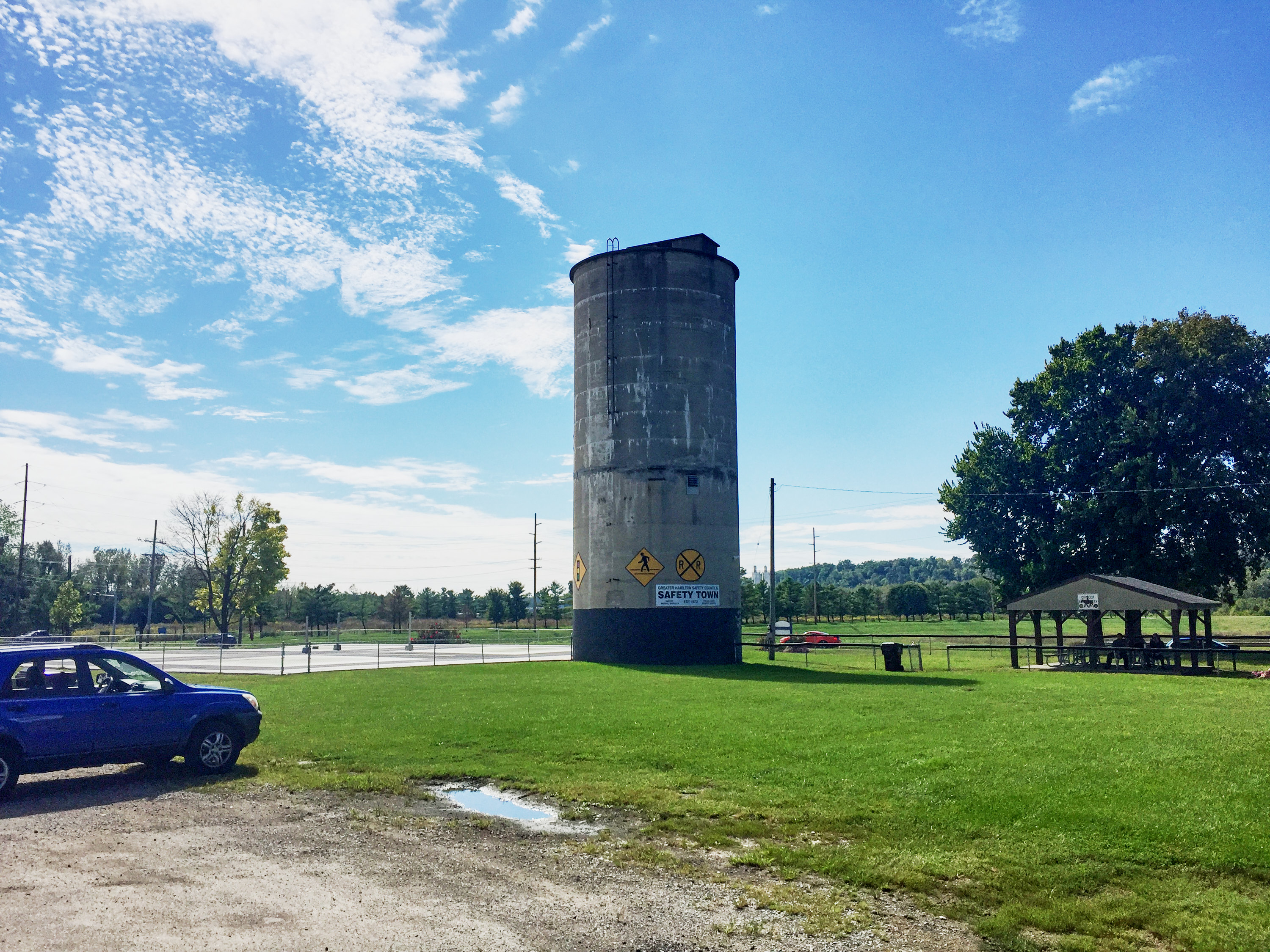 Location of the Ohio Electric's Lindenwald Power Station in Gentry Park, looking soutwest from Williams Avenue. This water tank is all that's left of the plant, which was a signature installation of the Ohio Electric, but which was quickly outmoded and demolished before formation of the C&LE.
