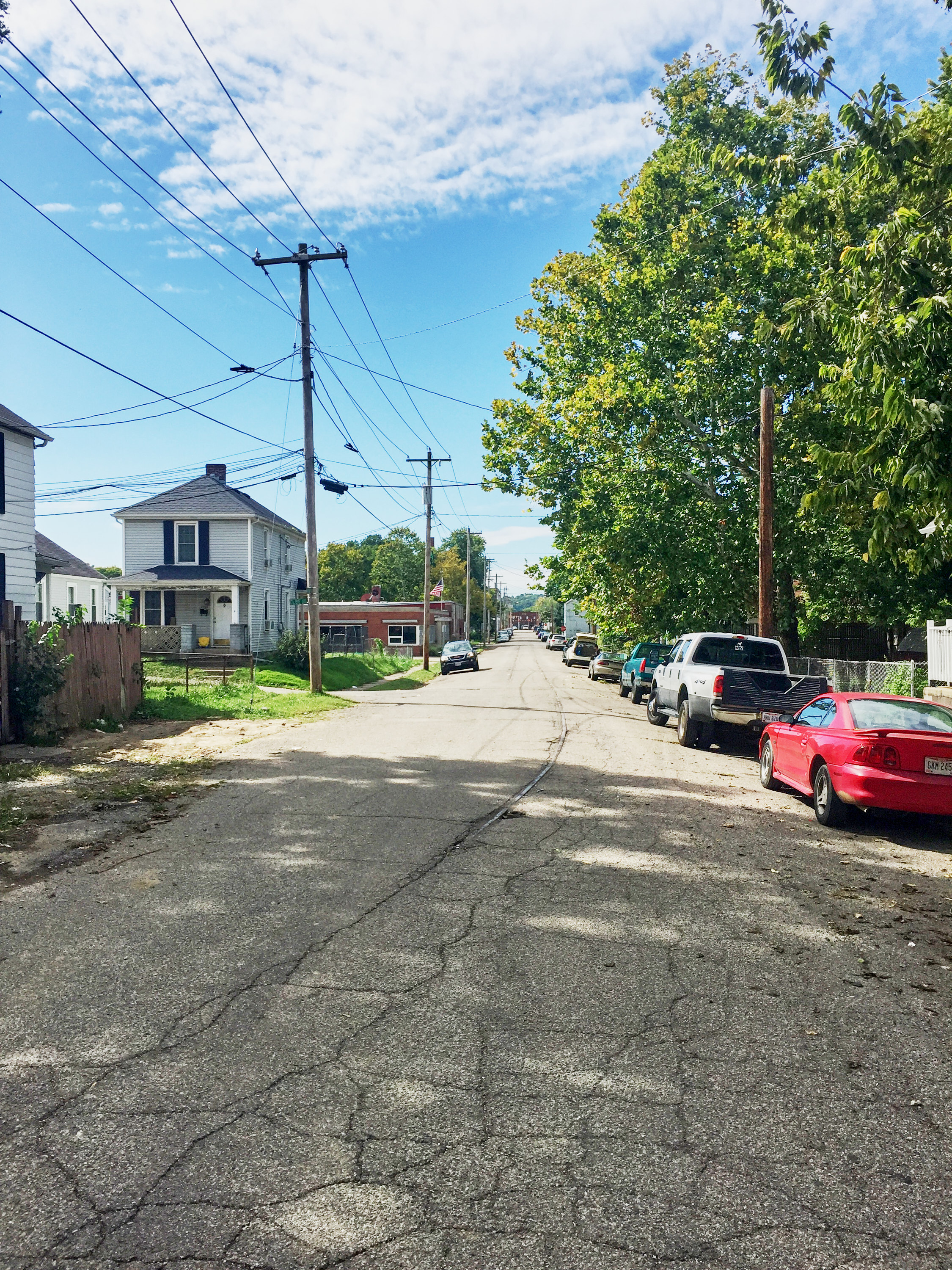 C&LE freight spur on Williams Avenue in Hamilton's Lindenwald neighborhood, looking west at the start of the curve onto Zimmerman.