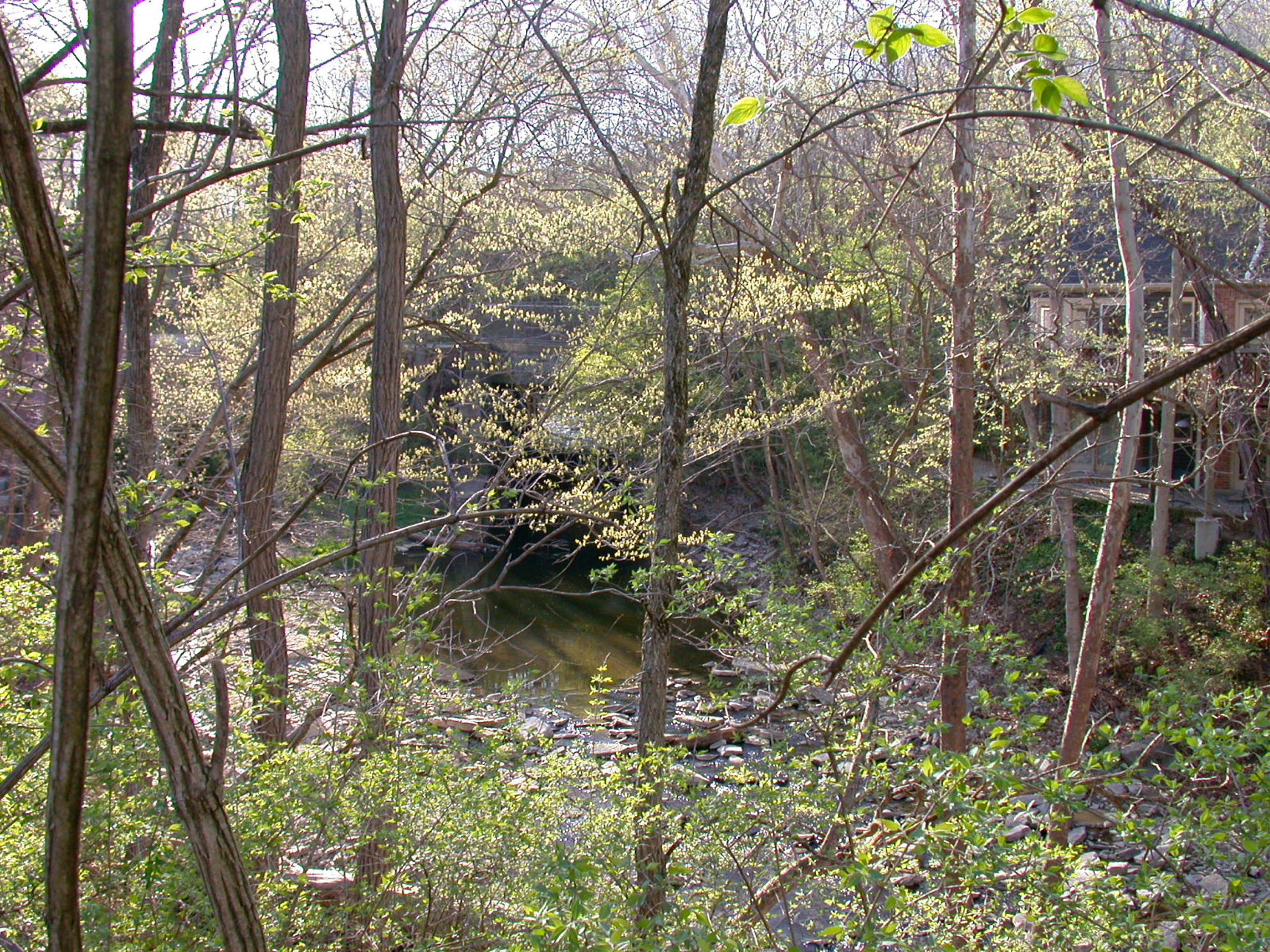 CM&B right-of-way along the old PRR line, looking West from Miami Road. If you look closely you can see a tunnel for the river under the PRR. The CM&B had a trestle across this stream in the foreground.