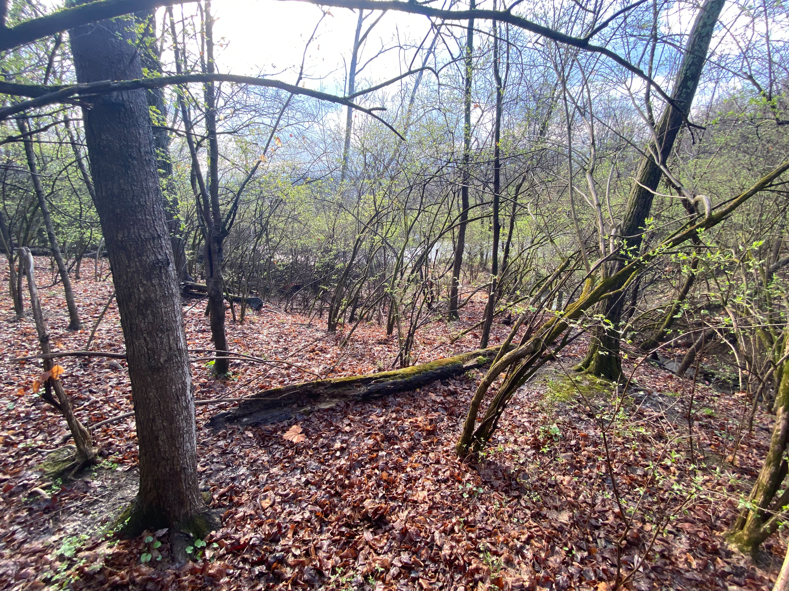 Cincinnati Western tunnel east portal location, looking east towards Faraday Road. The creek is at the right and the tunnel and cut was roughly underneath that creek.