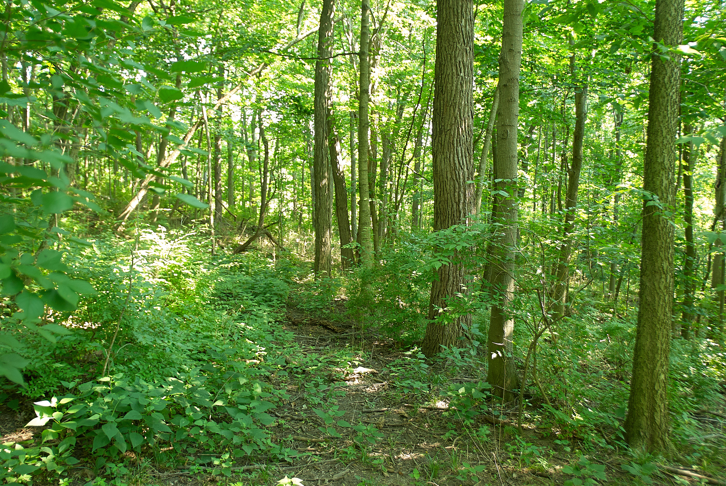 Cincinnati Western right-of-way at the southwest corner of Triple Creek Park in Colerain Township, looking south. I-275 is just a few hundred feet south of here. The grading isn't particularly evident at this point as it basically disappears into a natural hillside terrace.