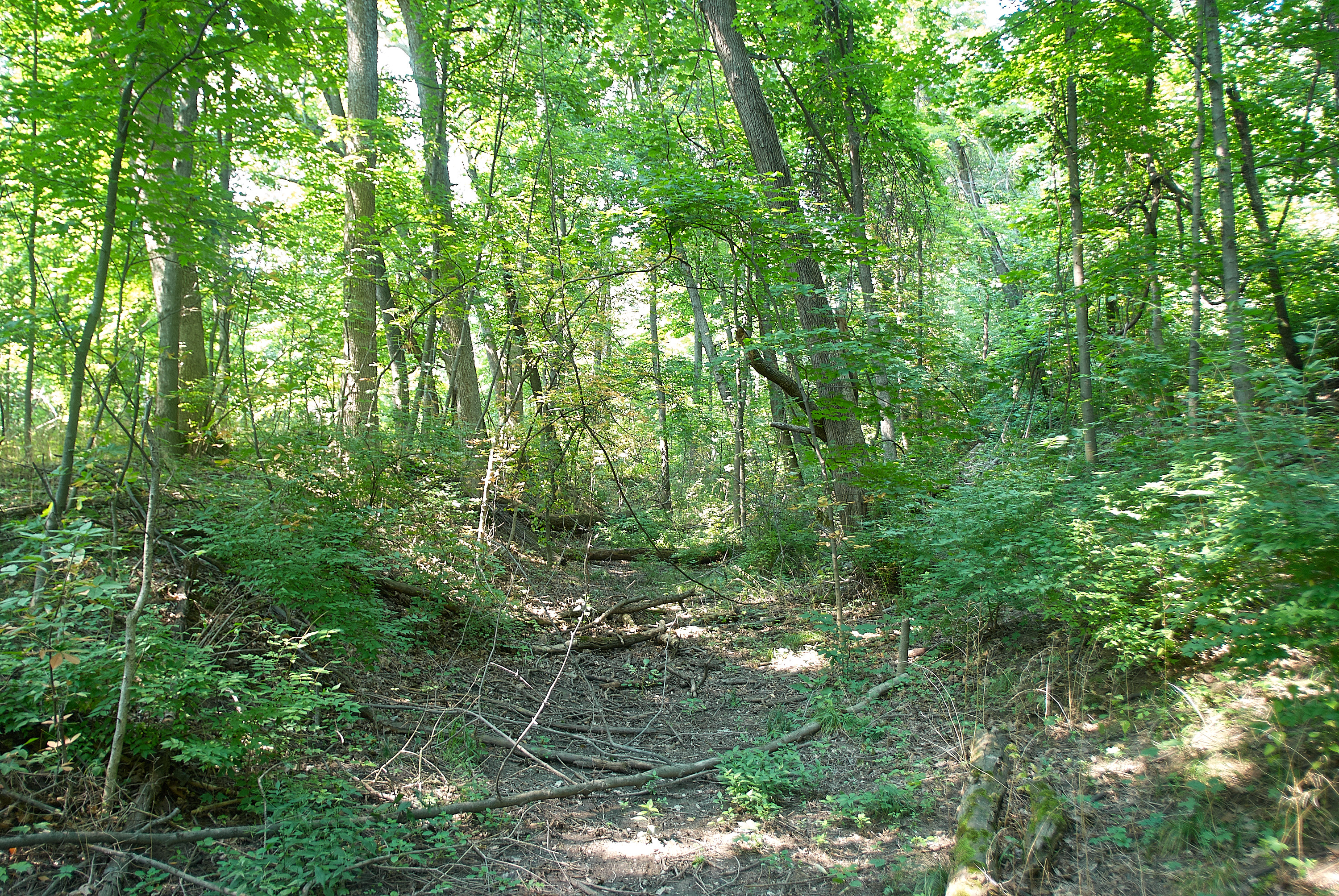Cincinnati Western grading at the western edge of Triple Creek Park, looking north. This is the second of the three main cuts in the park. It's fairly shallow compared to the others.