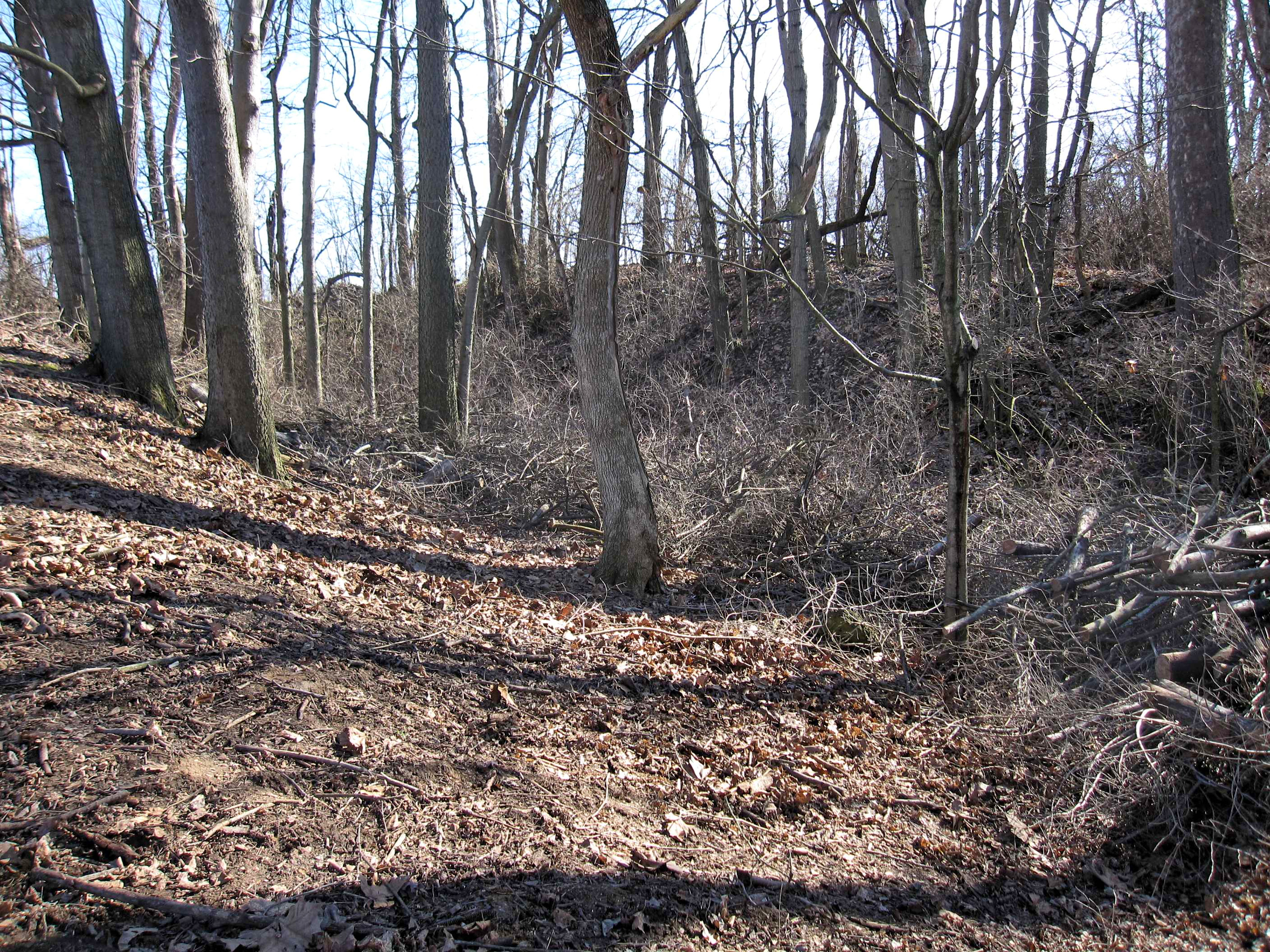 Cincinnati Western grading about 1,000 feet north of W. Kemper Road in Colerain Township. Like in Triple Creek Park, this is another short cut and fill approach for a trestle over a large ravine.