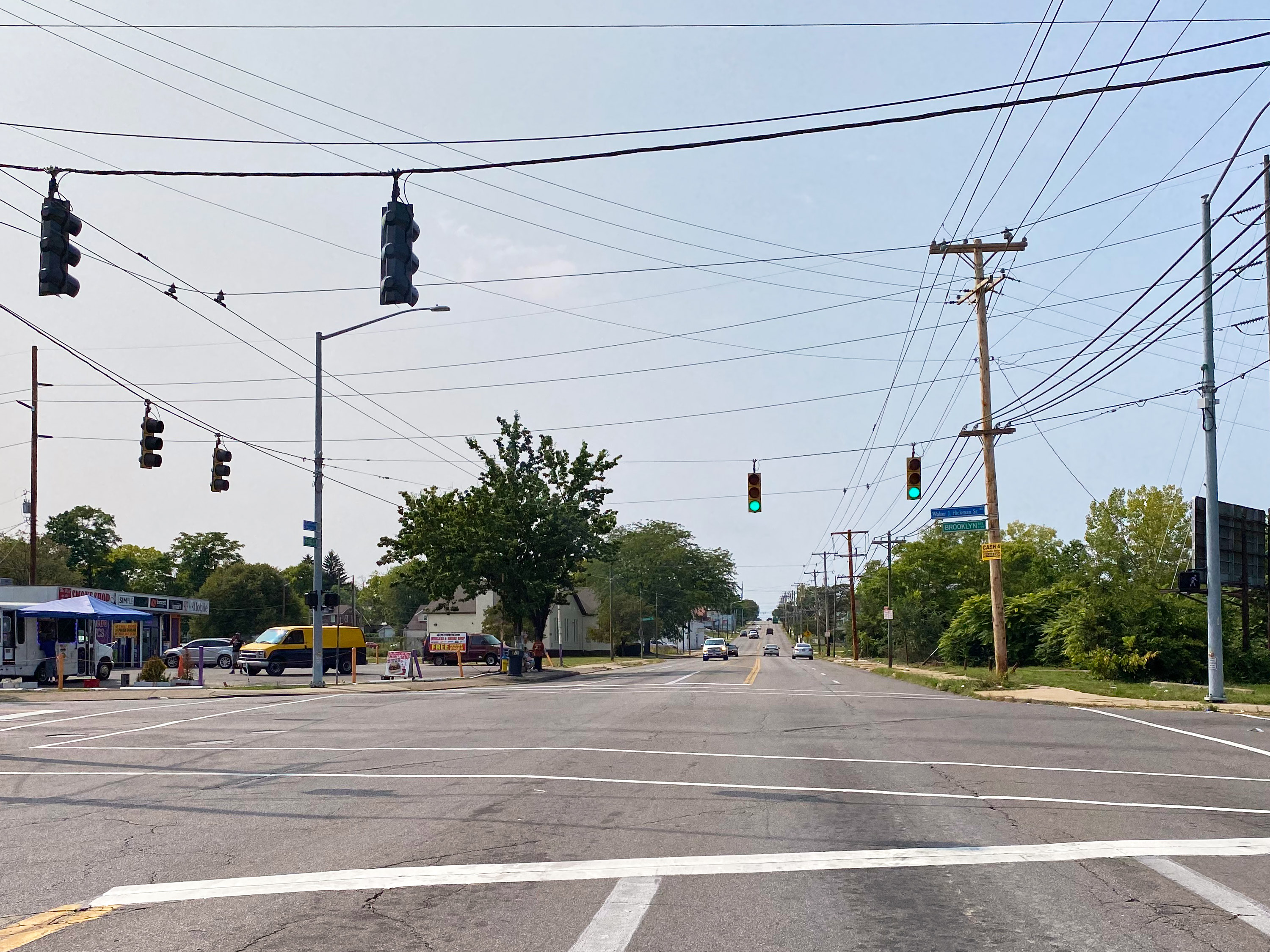 A closer view of the Dayton & Western route at 3rd and Abbey, looking west. Note that Abbey becomes Brooklyn north of 3rd. Some angled cracks in the pavement going from the bottom left to the right show where the CH&D Delphos Division tracks once crossed.