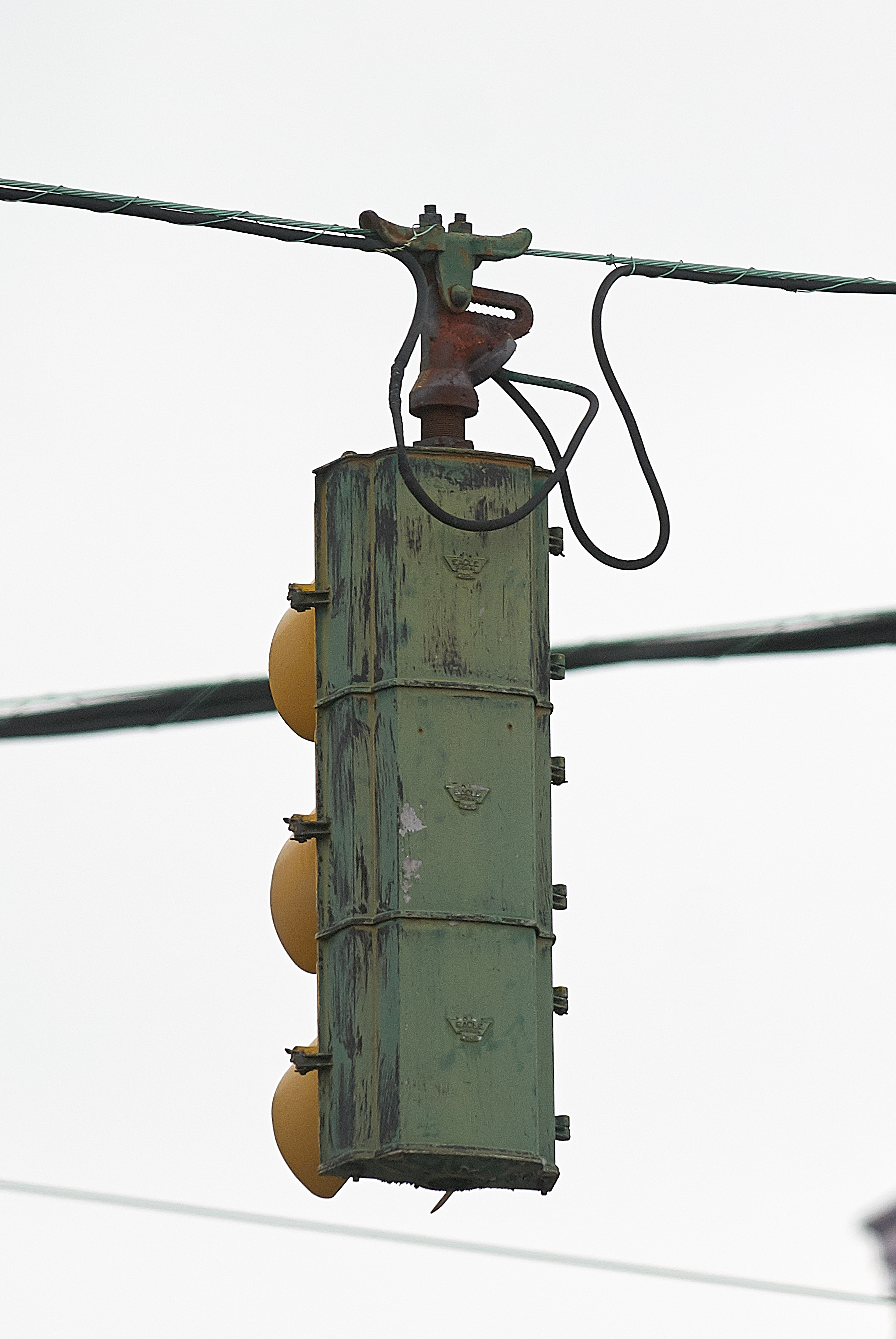 The rear of an Eagle flat back signal at Oakley Square. While these look basically the same as the older Eagleluxes and Marbelites on the front, they have a much different look on the back. The flat backs first appeared in the mid 1950s. All the signals at this intersection were replaced in 2010 or 2011 as part of the Oakley Square redevelopment