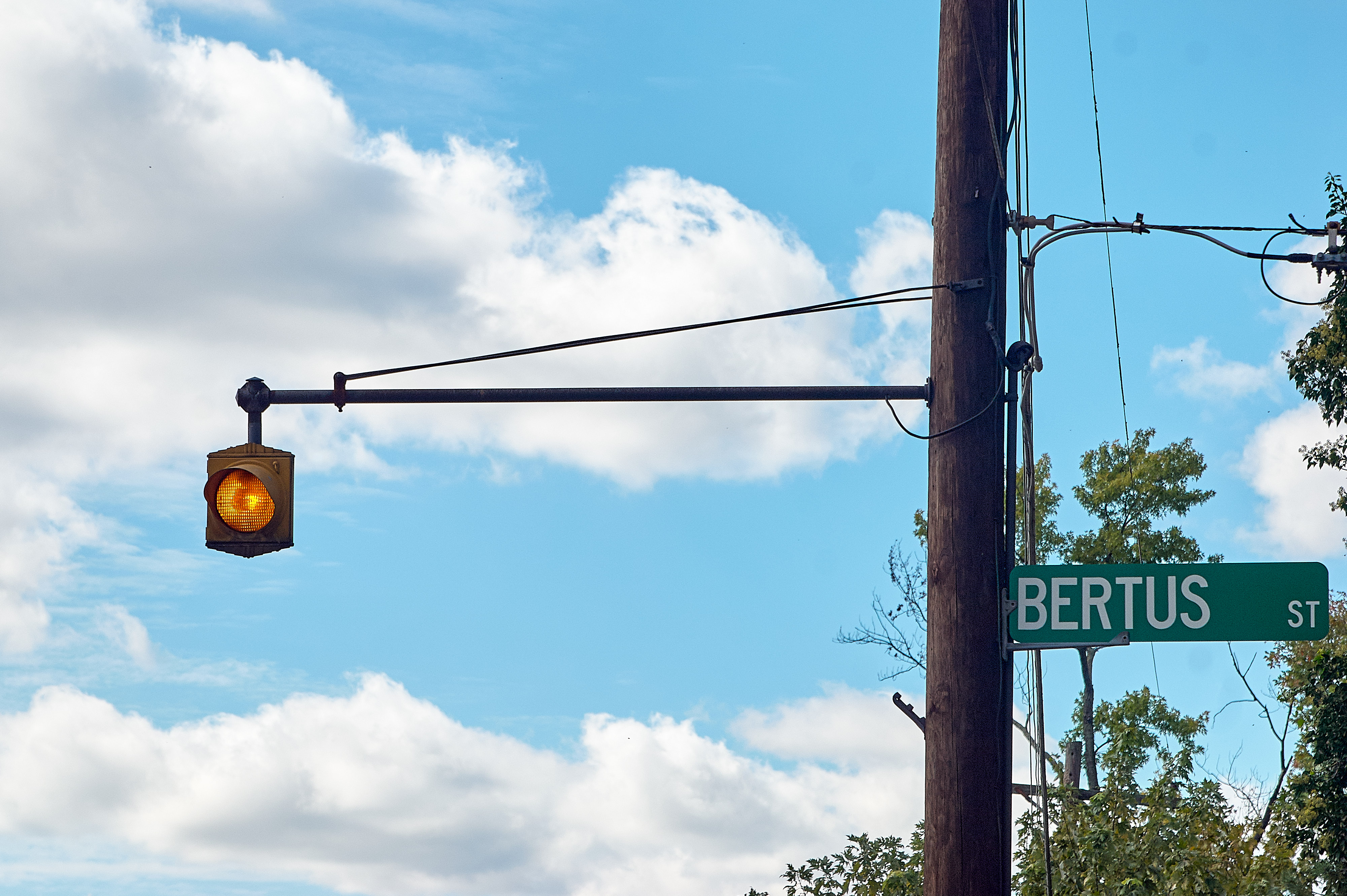 A Crouse-Hinds art deco beacon at Mitchell and Bertus in St. Bernard. This is the closest an old (1930s or 1940s) Crouse-Hinds gets to being in Cincinnati, as the border with St. Bernard runs right down the center of Mitchell Avenue. This signal actually remains as of early 2020, though the lens and bulb have been replaced with an LED array.