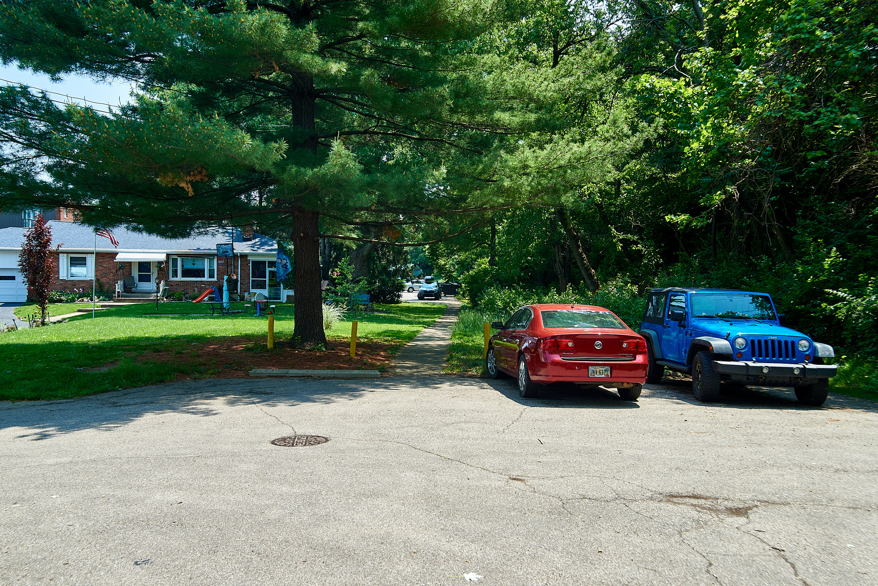 Subway and Miami & Erie Canal right-of-way at the end of Andalus Court in St. Bernard, looking east from the vantage point of the previous photo. The canal itself was in the woods to the right.