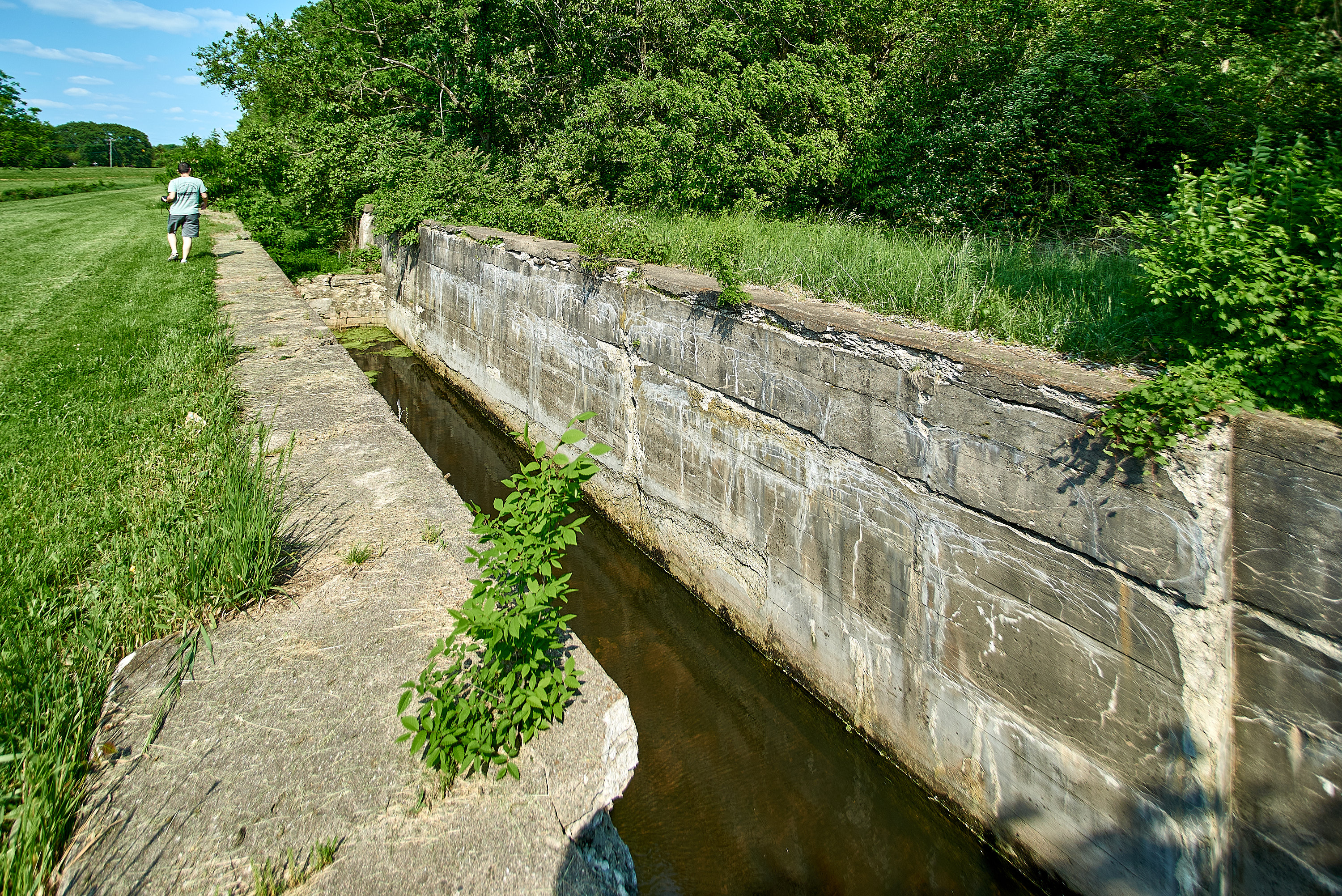 Miami & Erie Canal Excello lock #34, looking east from atop the lower gate location.