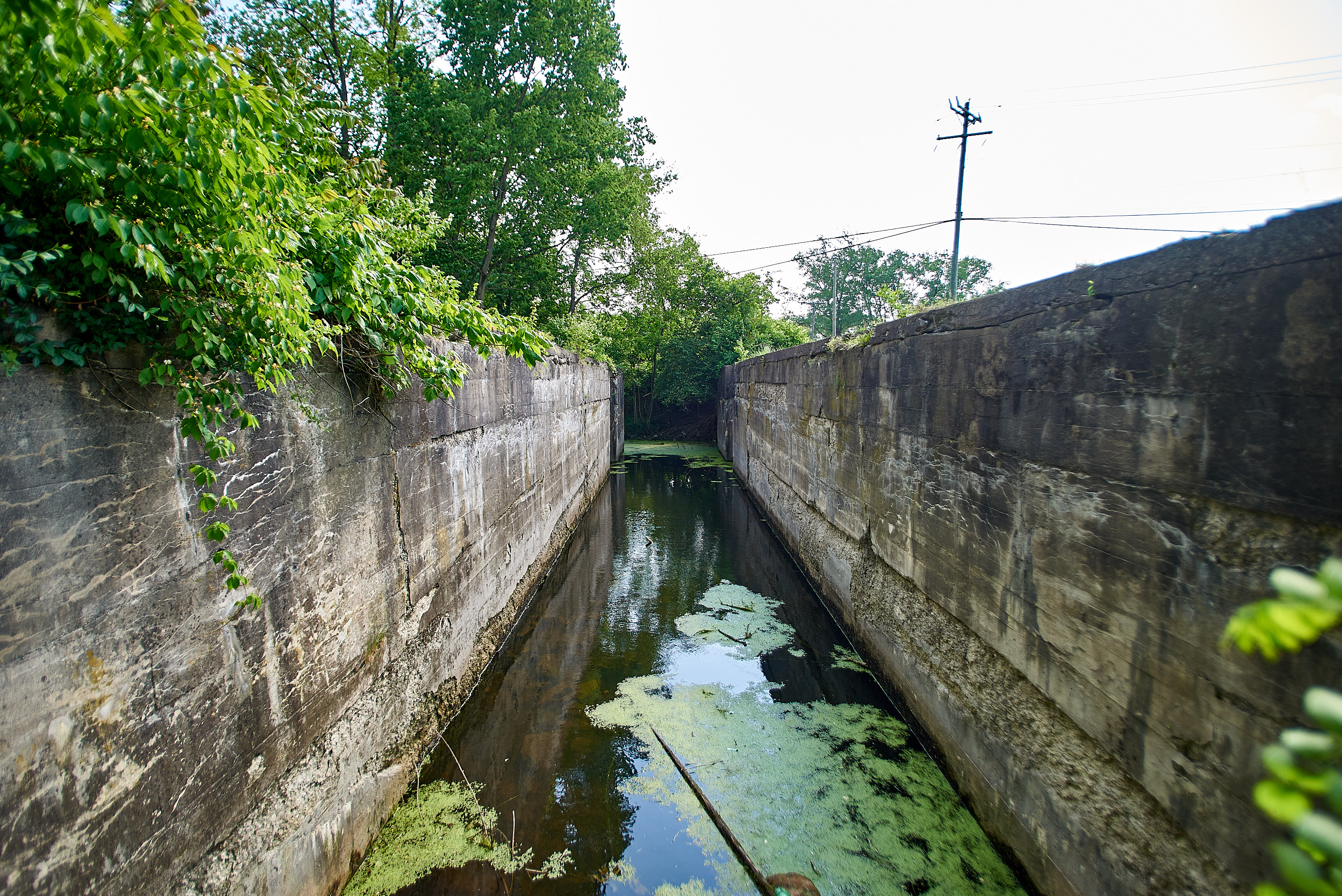 Inside the Miami & Erie Canal Excello lock, looking west.