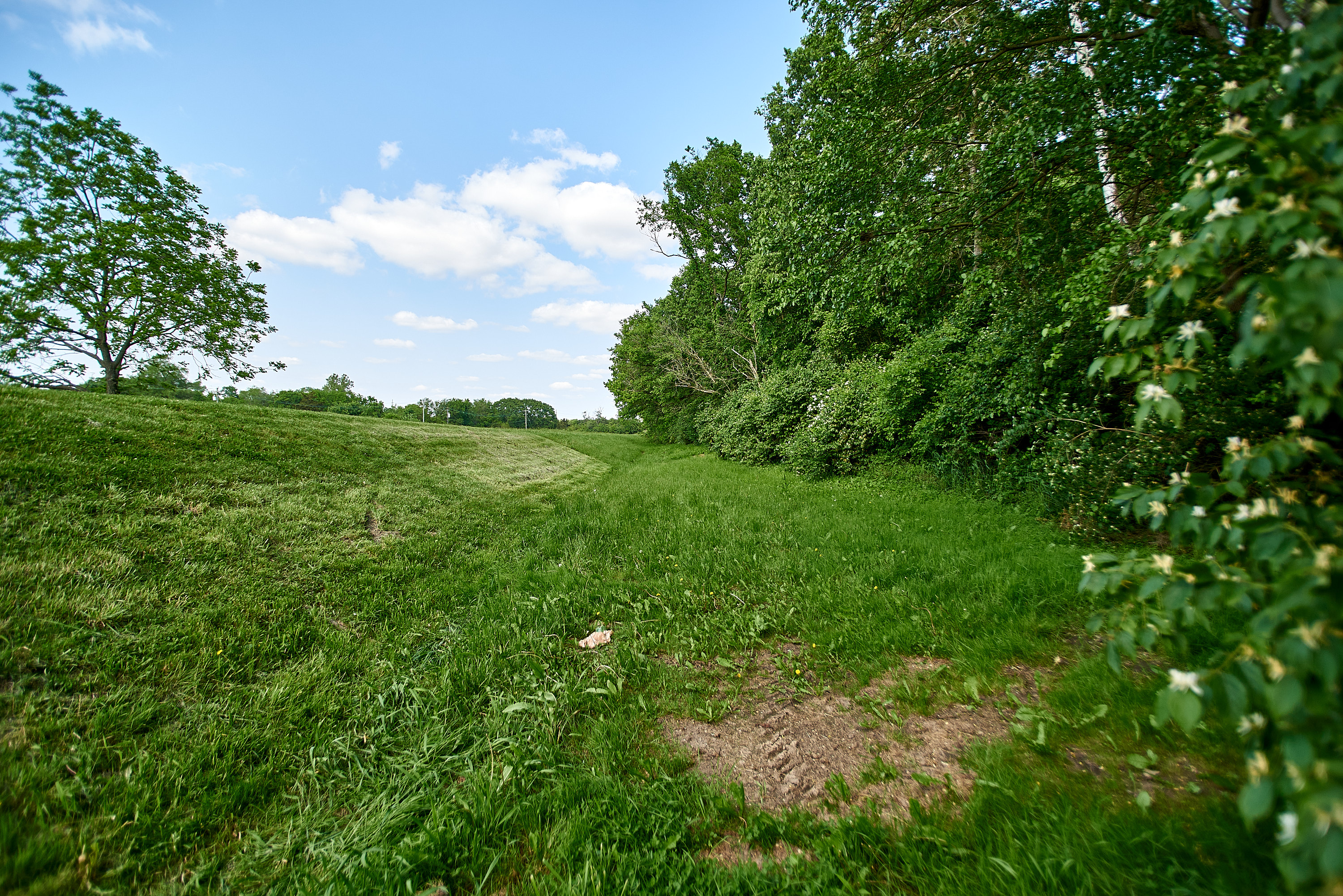 Miami & Erie Canal just above the Excello lock, looking east from the vantage point of the previous photo. The towpath to the left is higher than it was originally since it was raised for flood control.