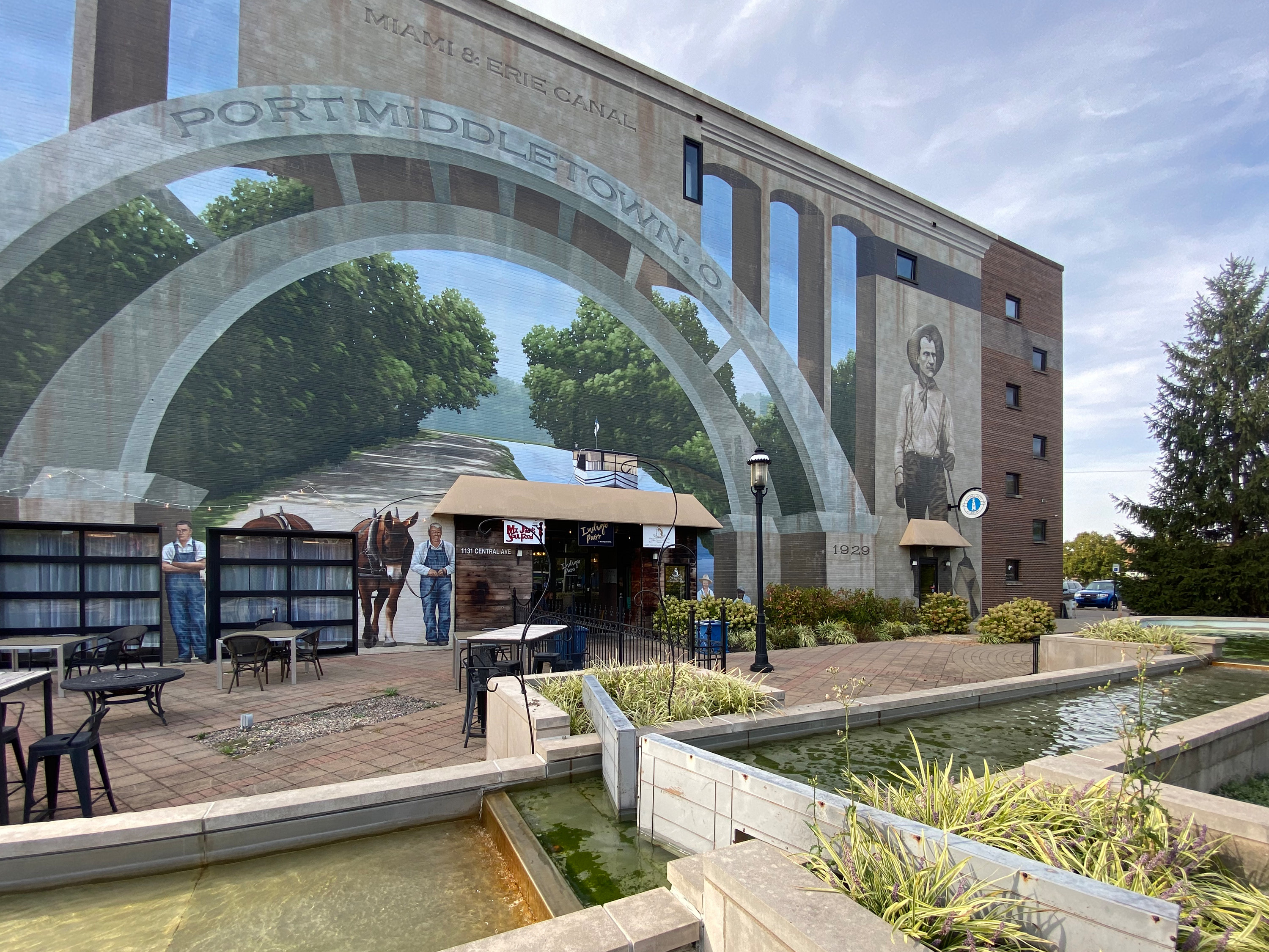 Miami & Erie Canal memorial fountain at Central and Verity in Middletown.