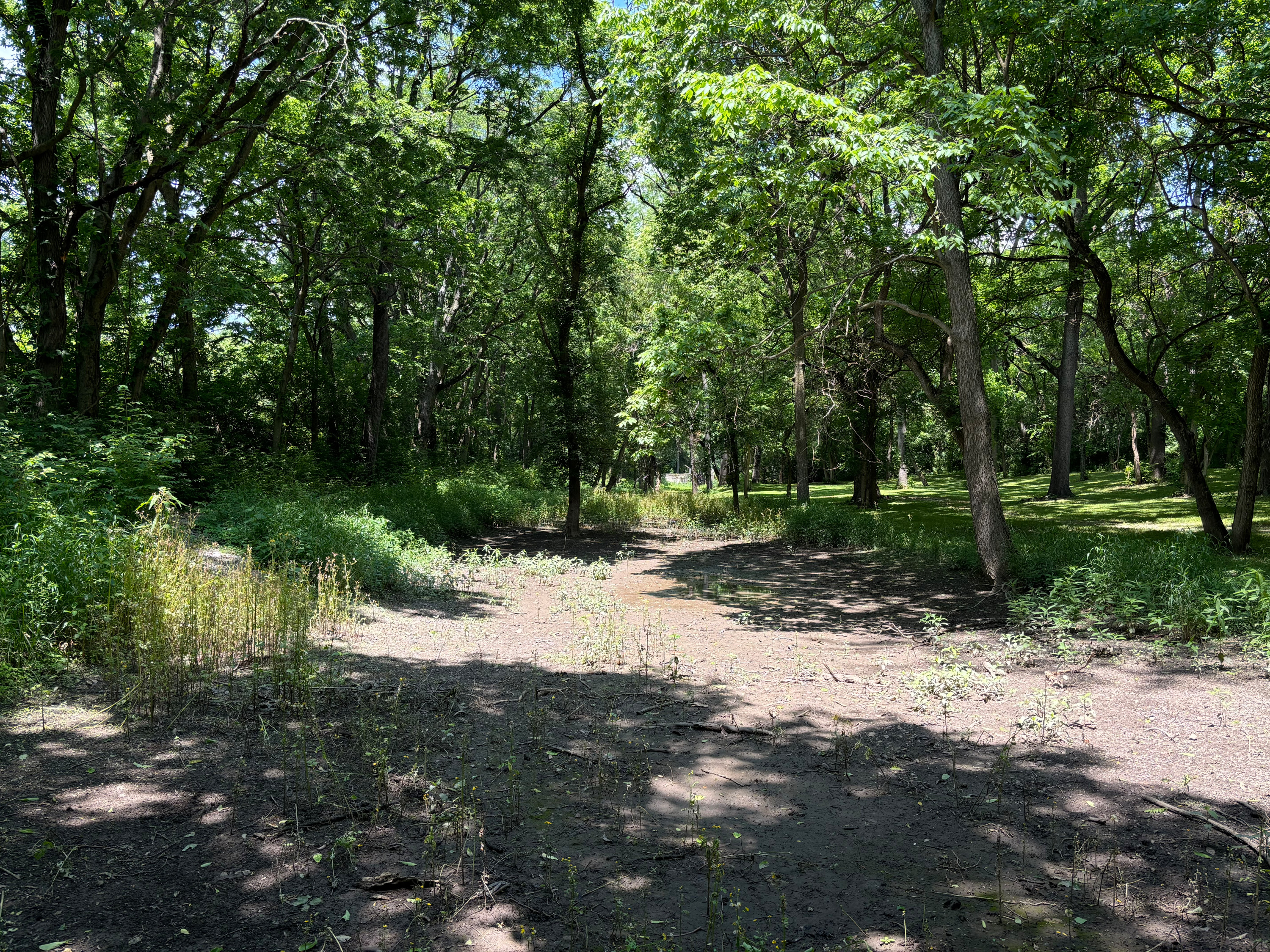 Miami & Erie Canal channel in Canal Lock Park in Huber Heights, looking north from roughly the same vantage point as the previous photo. Lock #18 is just barely visible in the distance.