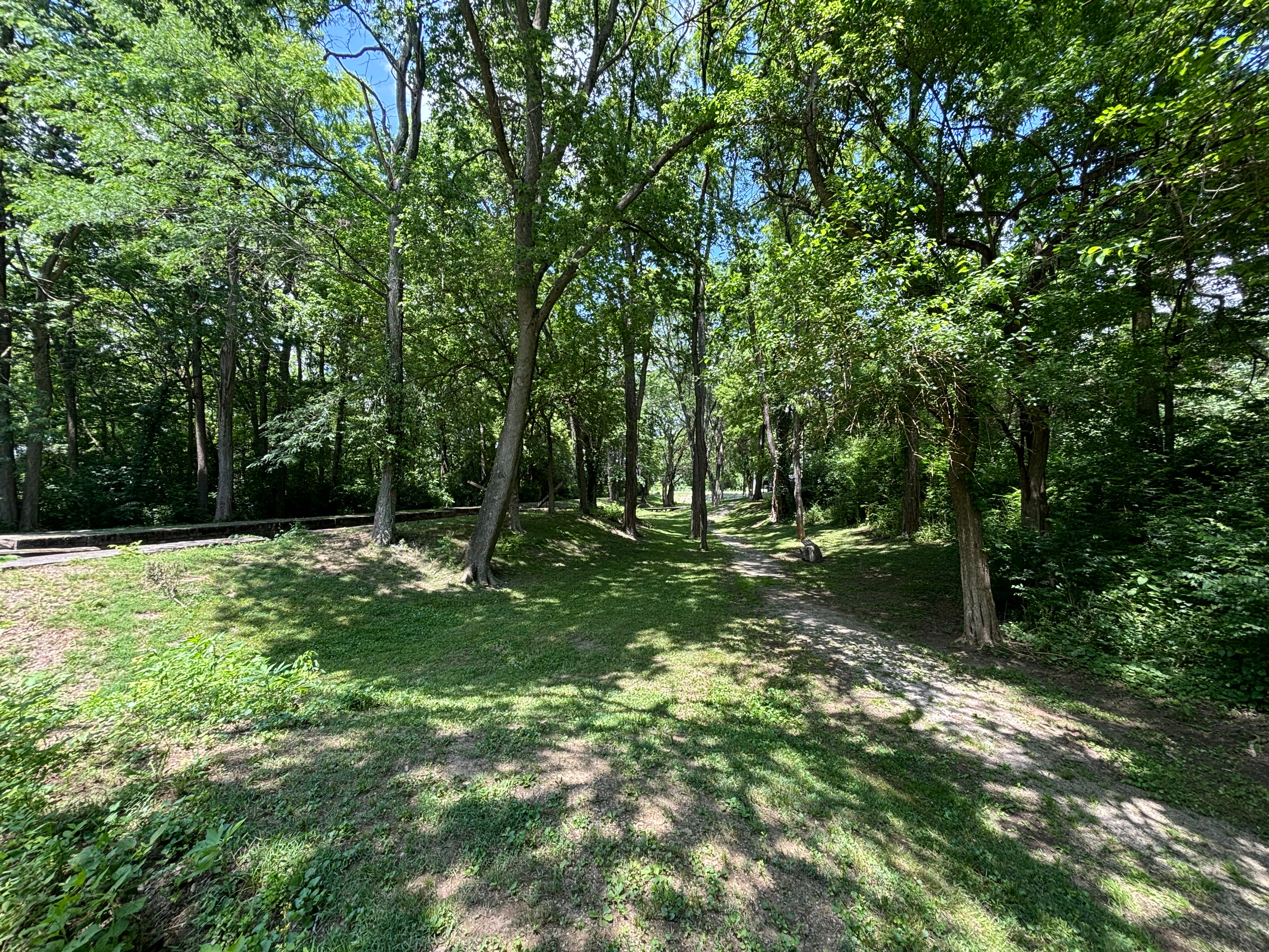 Miami & Erie Canal channel and lock #18 in Canal Lock Park in Huber Heights, looking north towards Fishburg Road along the overflow spillway and mill pond.