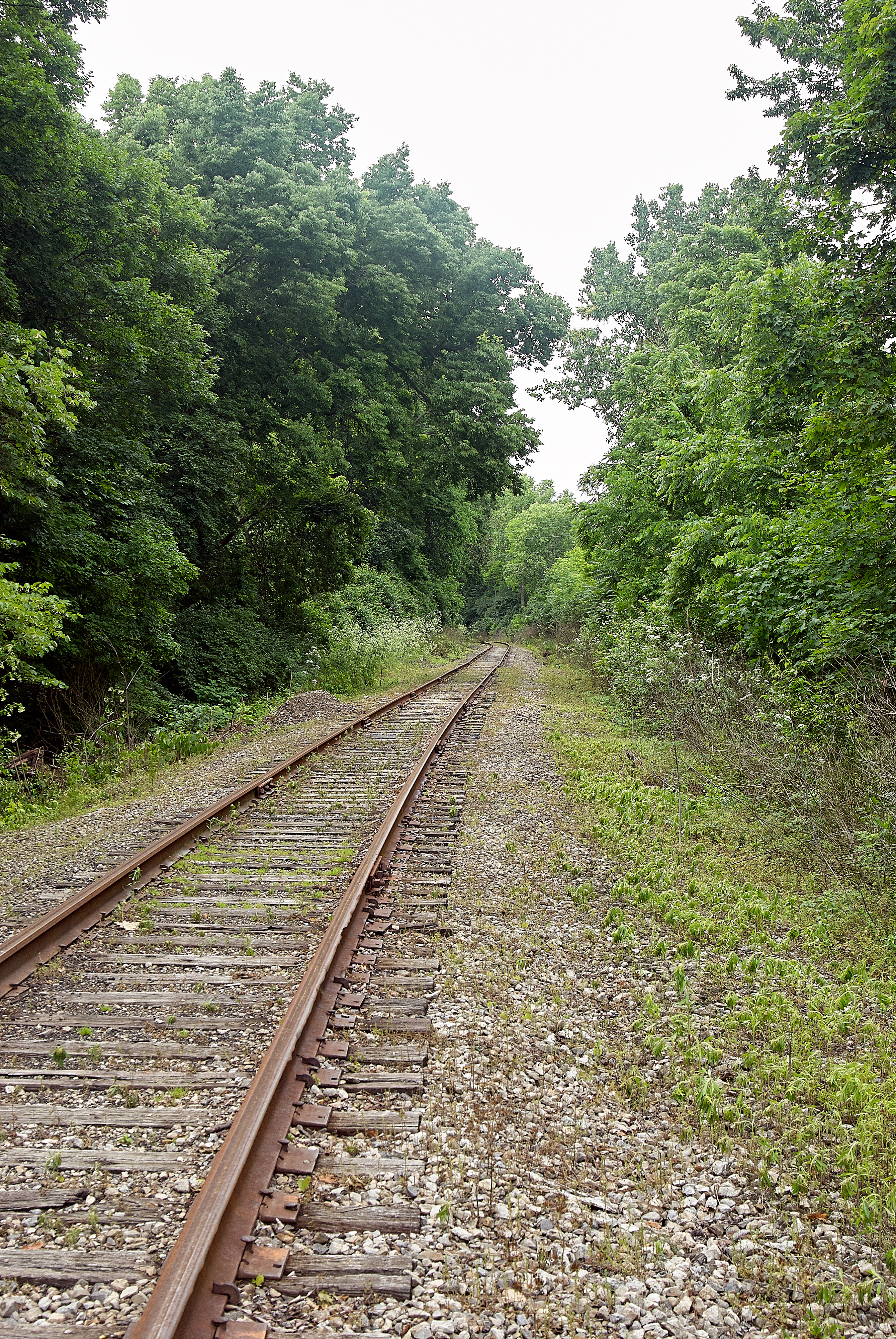 N&W Hyde Park Branch line through Ault Park, looking northwest. The end of Ault Park and Aylesboro Avenues are to the left.