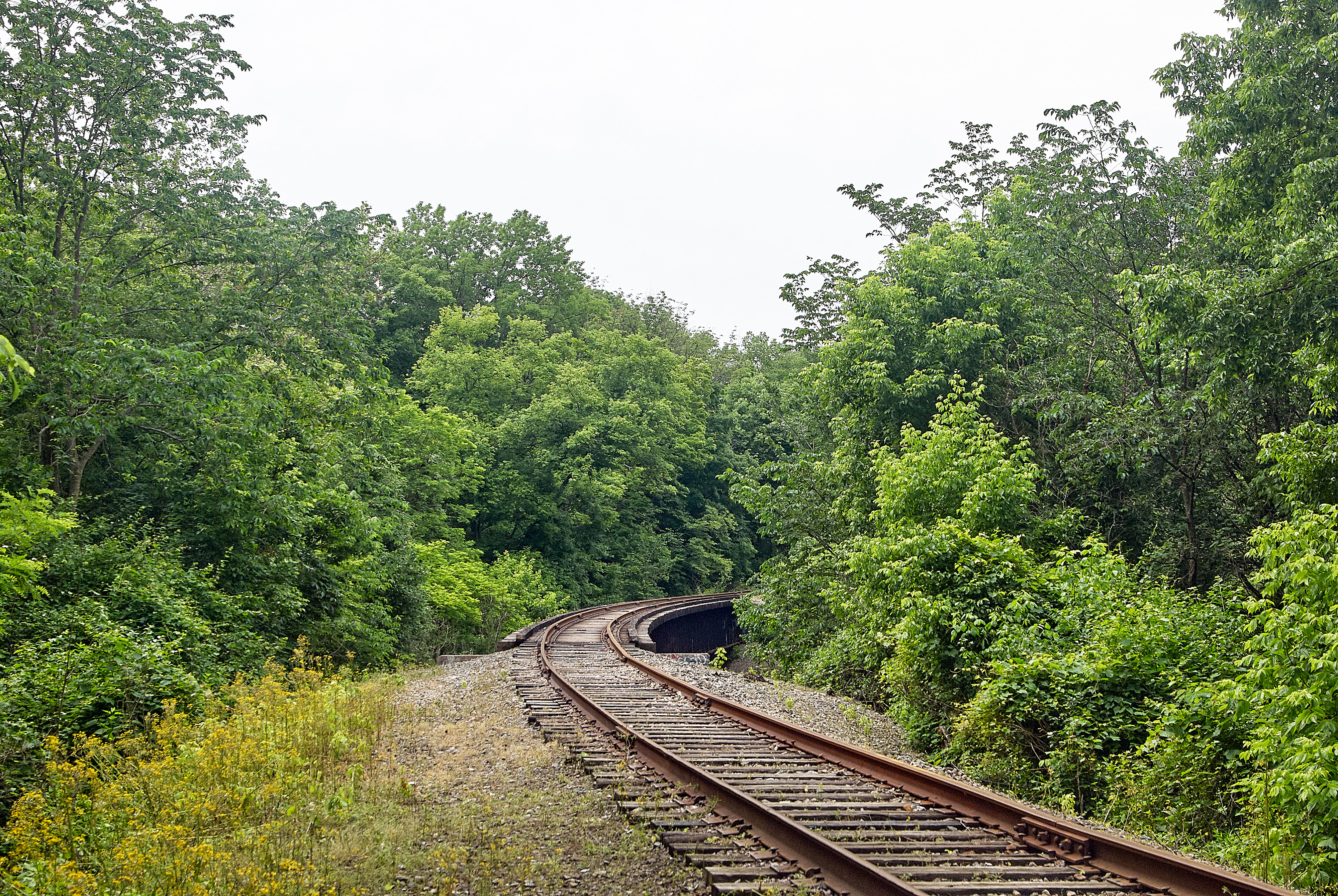 N&W Hyde Park Branch trestle in Ault Park, looking northwest.