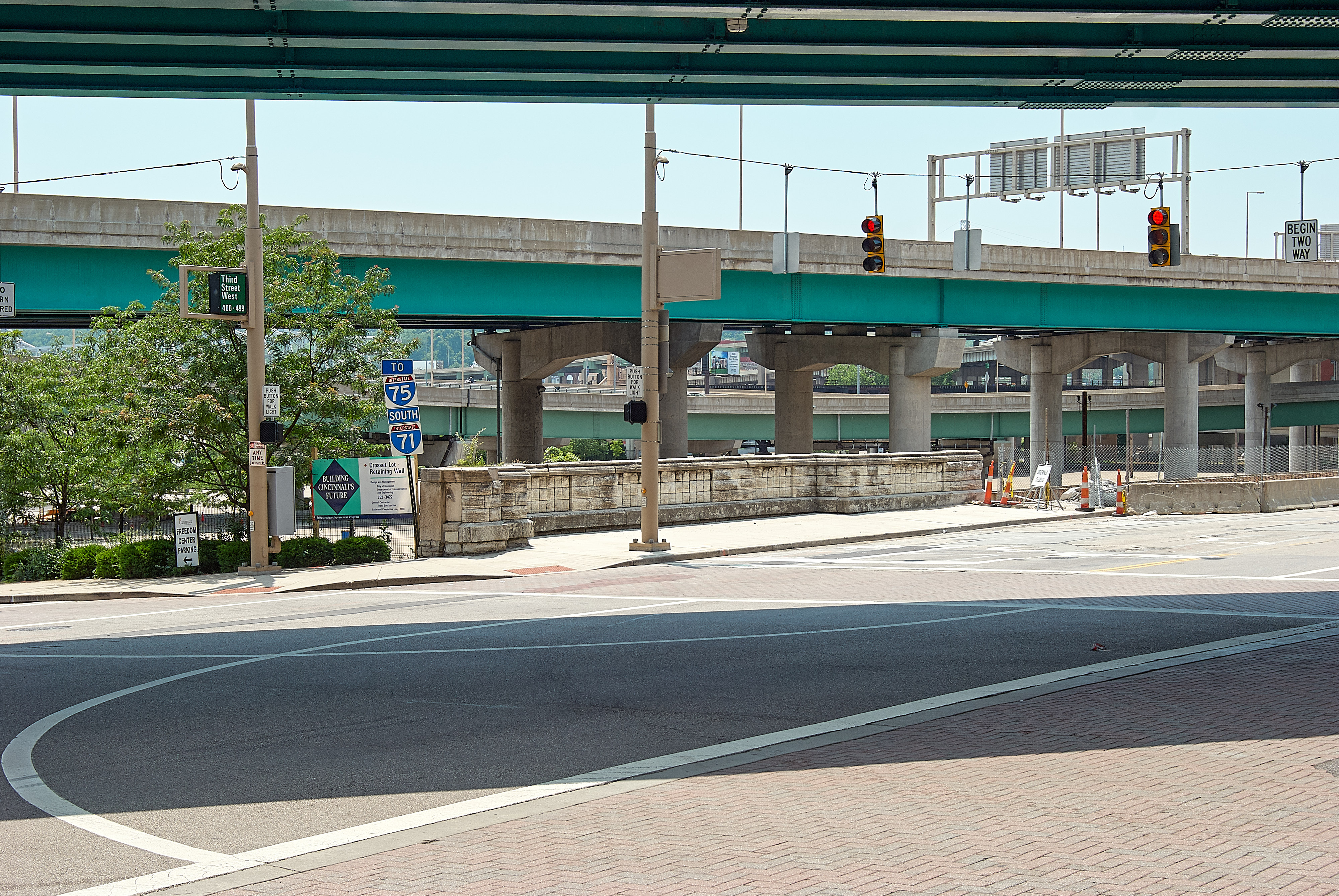 Remains of Central Union Depot at Central Avenue and Thrid Street, looking southwest. The wall at the edge of the sidewalk is actually the old foundation of the station. Central Avenue has been widened a bit in recent years, so the left side of the wall is actually not the corner of the building, but the right side of the front door.