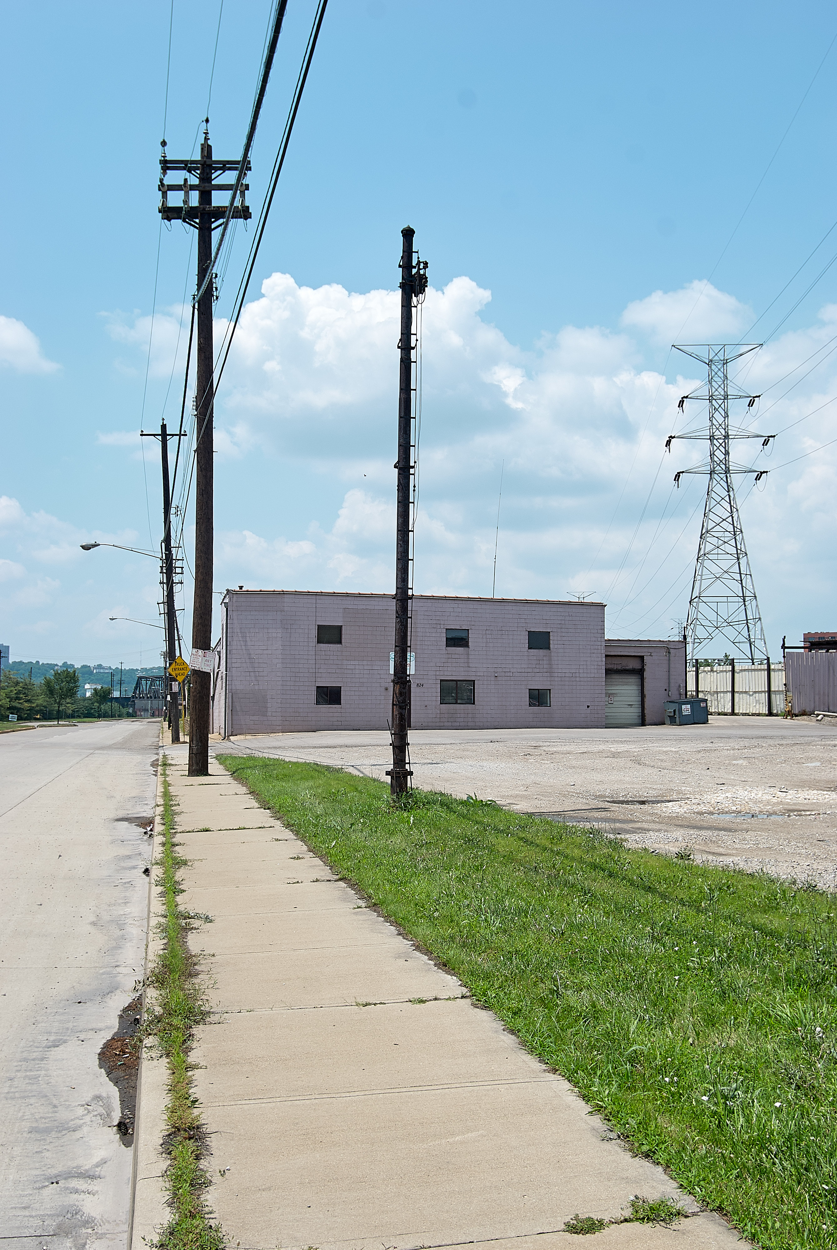 An abandoned signal along Mehring Way near Gest Street, looking west. The lot to the right was part of the yards for the B&O and Longworth Hall, but they have long since been abandoned.