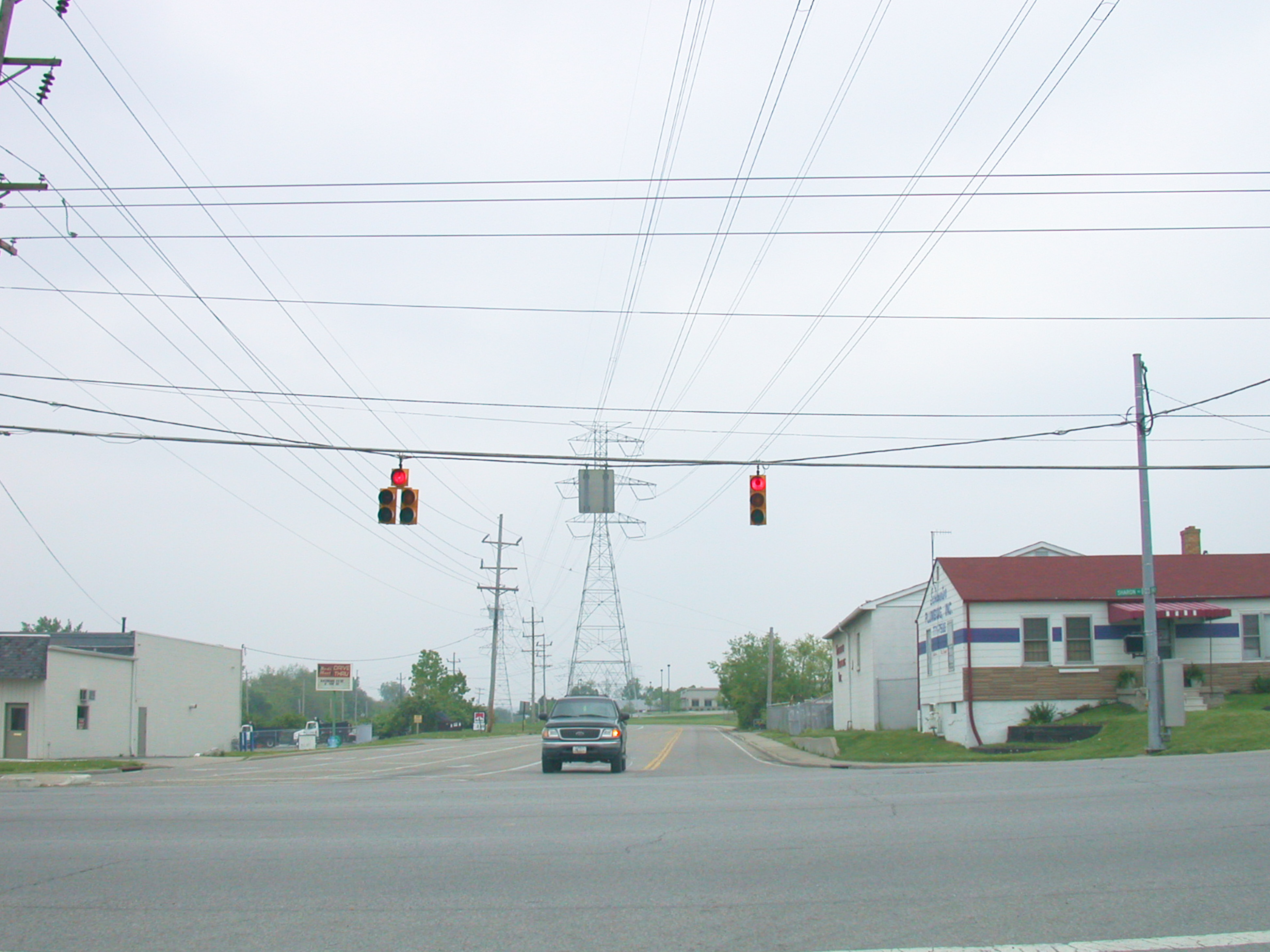 Canal Road in Sharonville, looking south across Sharon Road. This industrail street follows the path of the old Miami & Erie canal from this point south to the General Electric plant, where I-75 lies on the canal route.