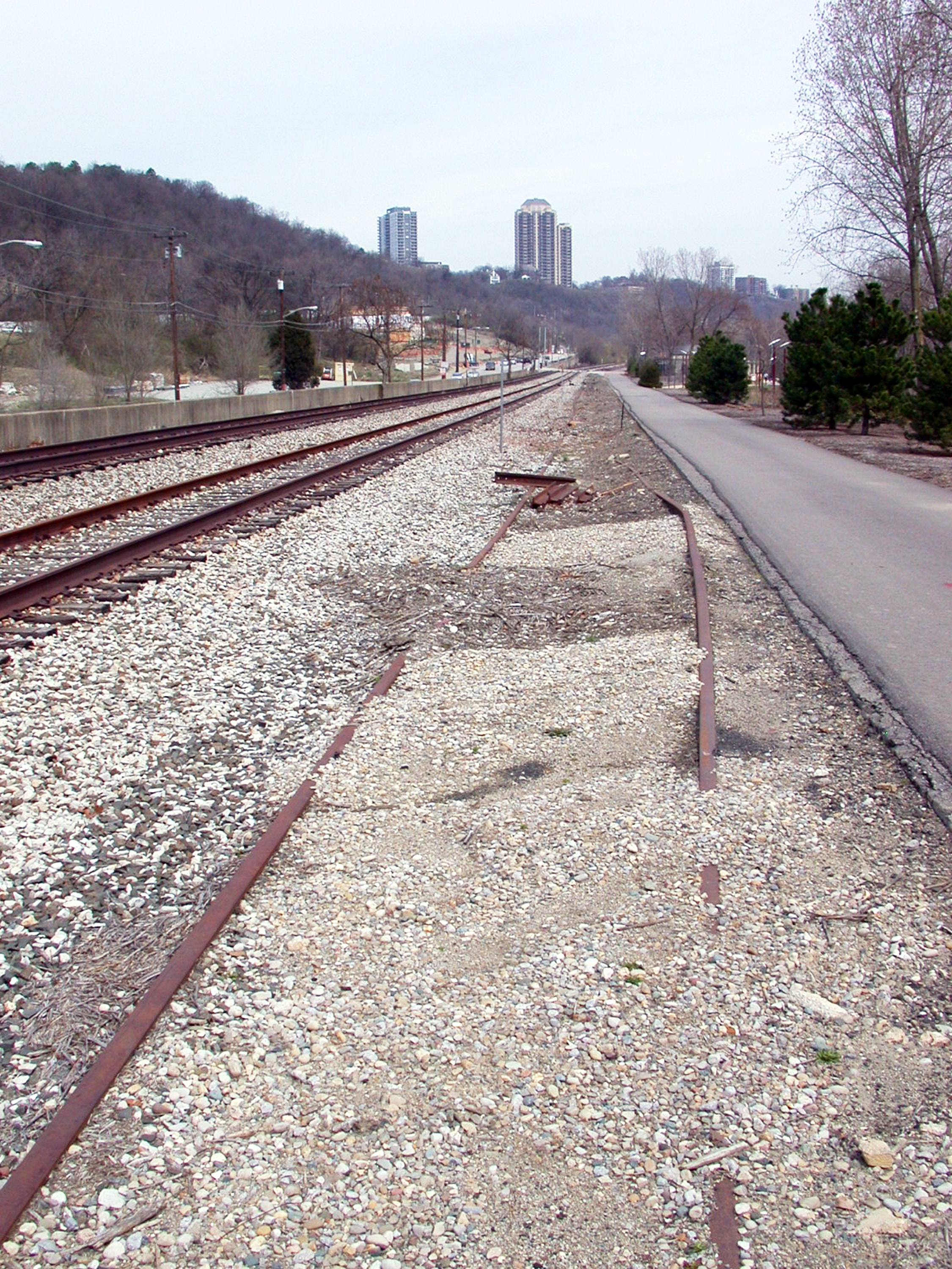 Indiana & Ohio Oasis, former Pennsylvania/Little Miami Railroad line at the International Friendship Park, looking east from the vantage point of the last photograph. Despite signs that say "Warning, active freight line" no trains will bother anybody on this track. Sometime in 2006 or 2007 it was rebuilt with salvaged rails and is at least passable as a light-duty siding.