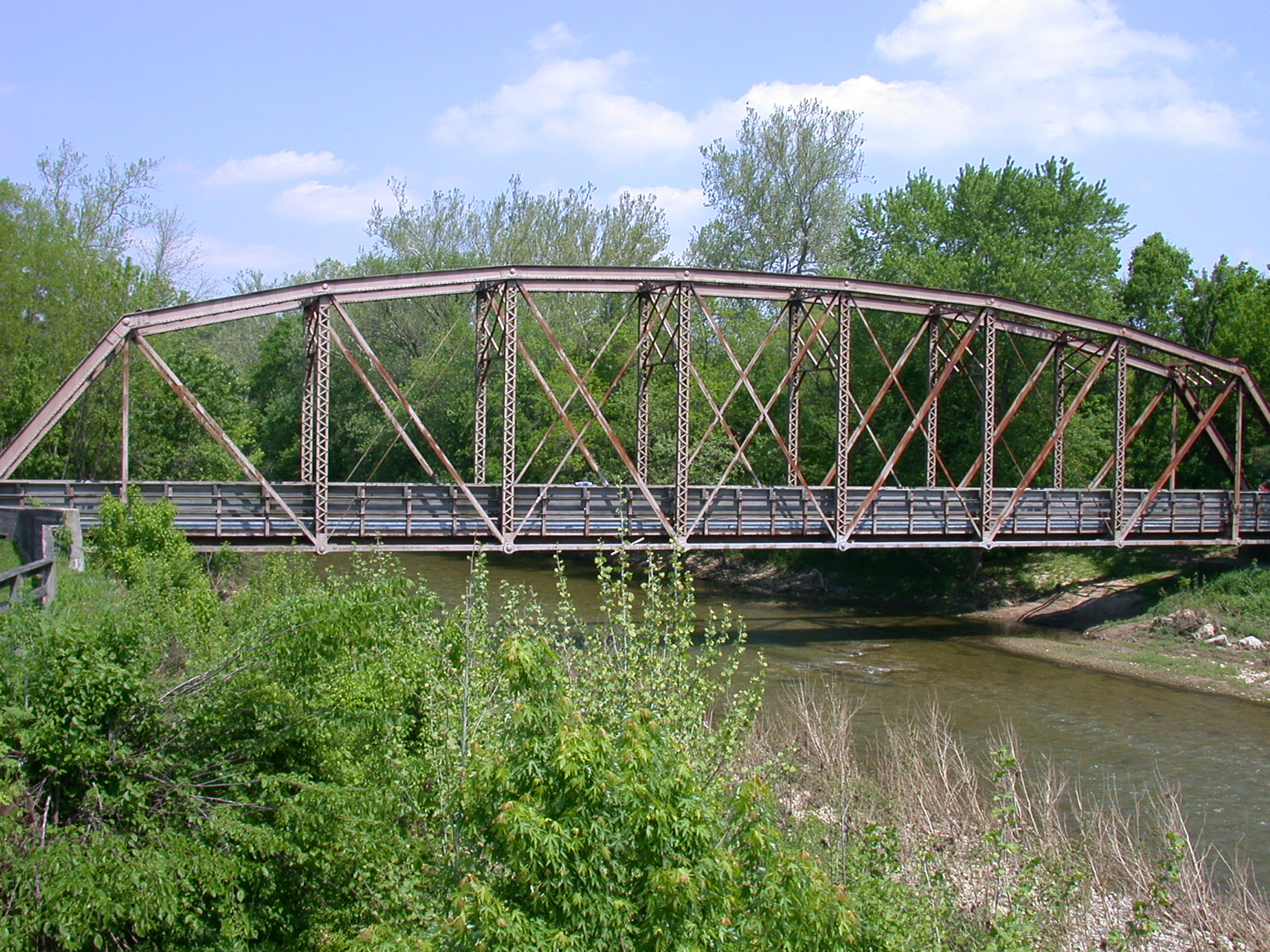 Side view of the bridge to the east of Front Street in Morrow, looking north along Todds Fork towards the Little Miami River.