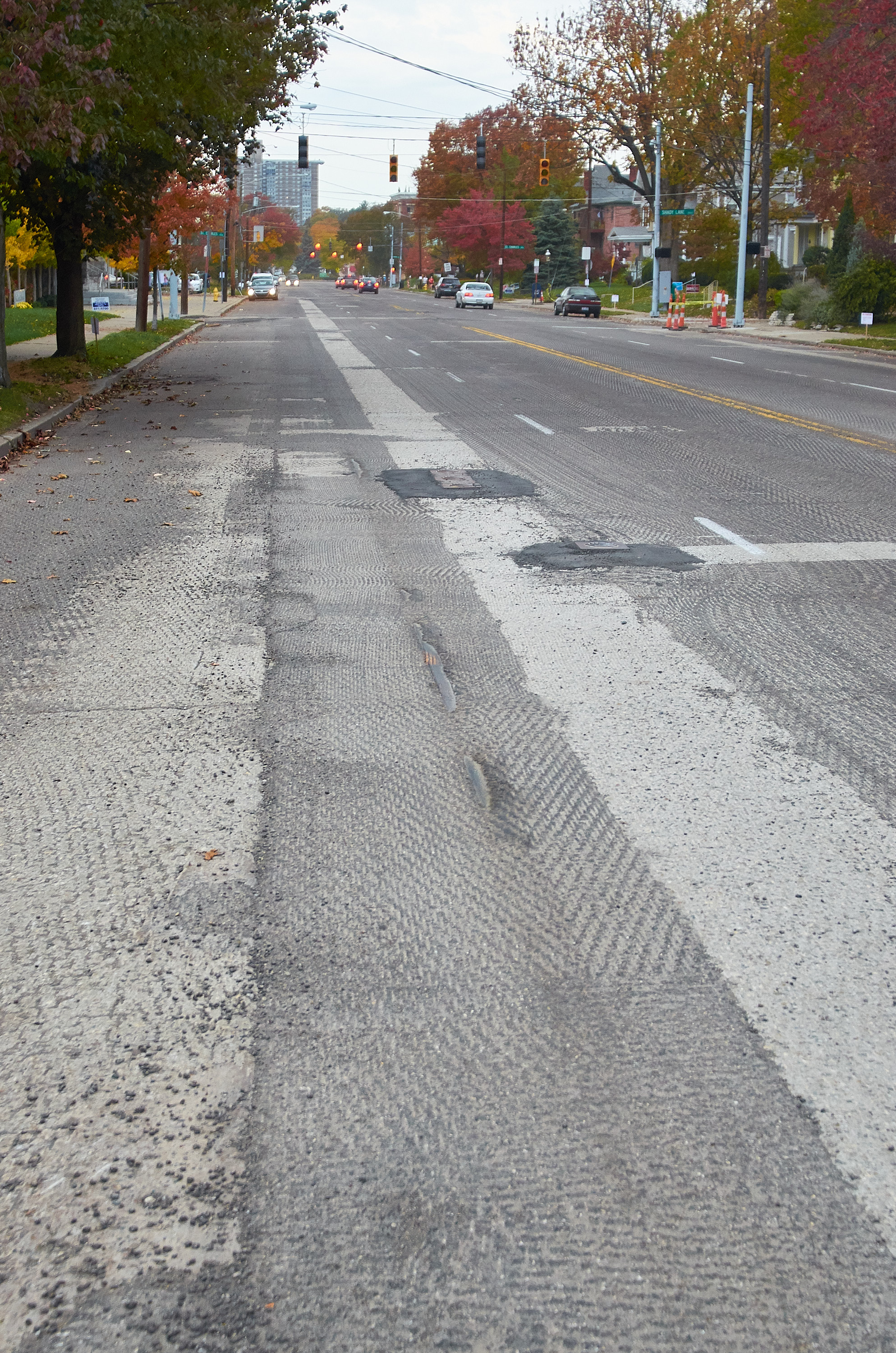 Exposed tracks at Erie and Monteith, looking west towards Shady Lane and Hyde Park Square.