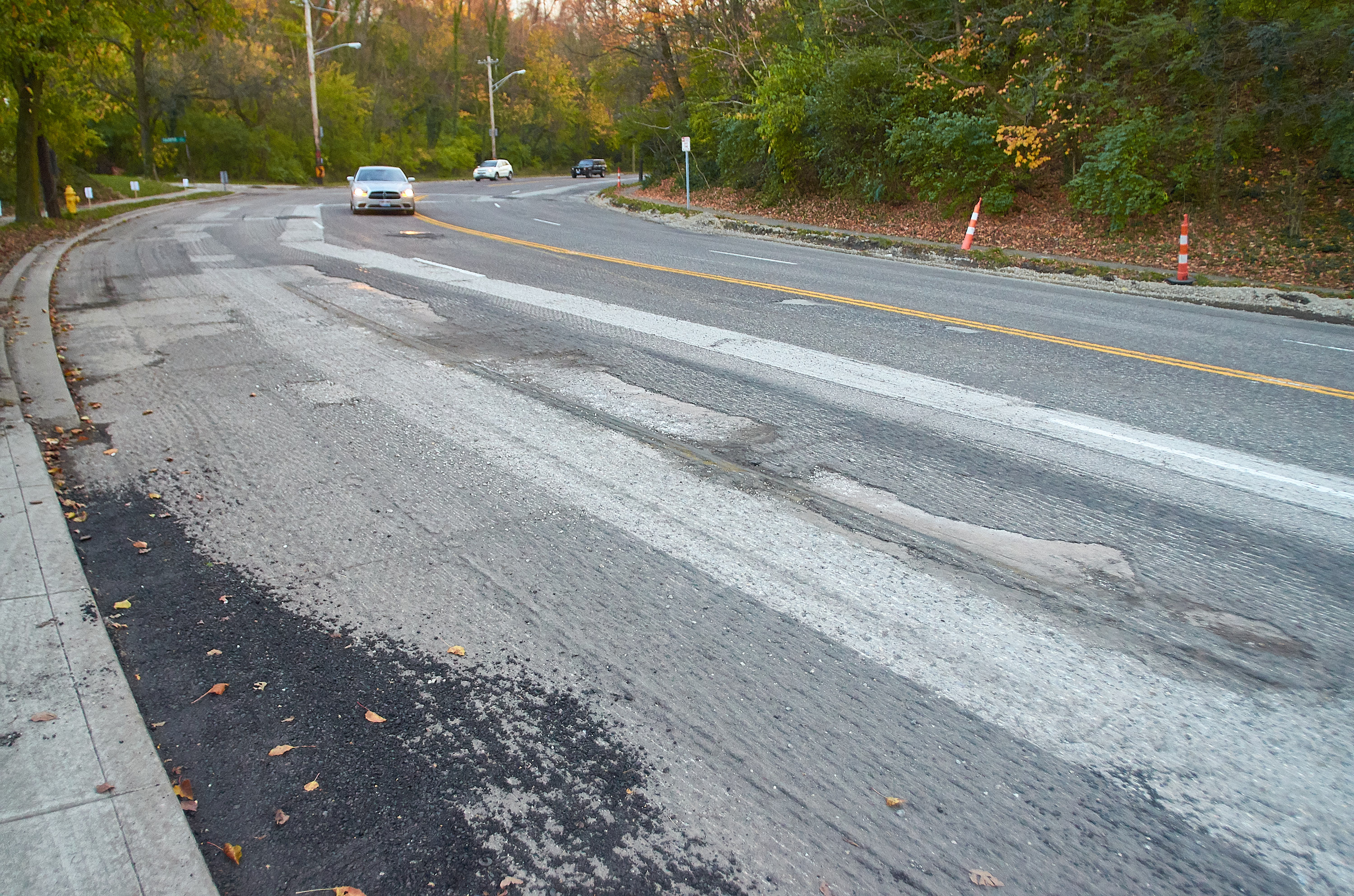 Revealed tracks on the Erie Avenue s-curve in Hyde Park, looking southwest towards the vantage point of the previous historic photo.