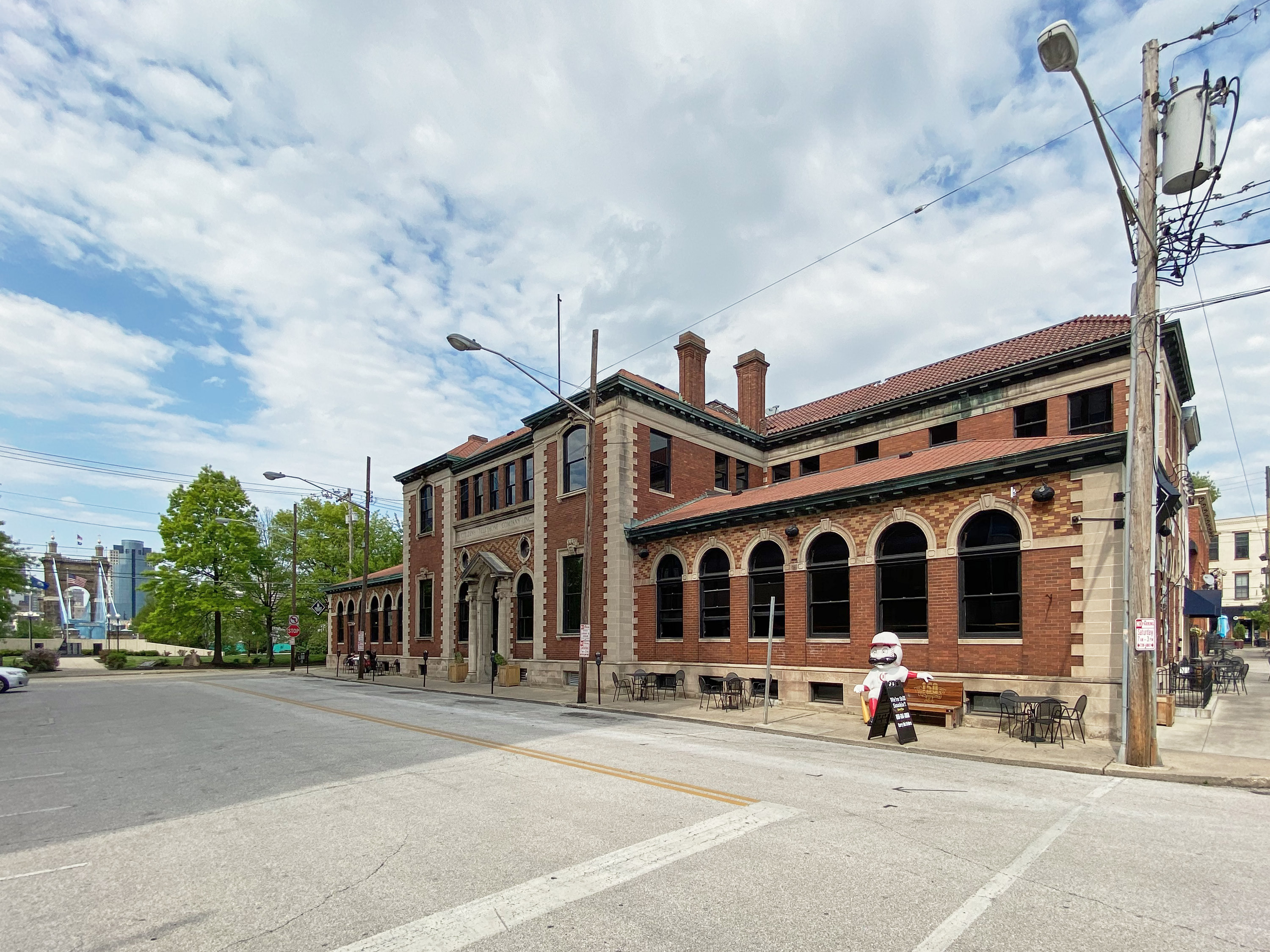 The Cincinnati, Newport & Covington Railway's headquarters in downtown Covington, looking northeast at the corner of Court Street and park Place. This building was opened in 1903 shortly after tracks were reconfigured to use Court between 3rd and Park as the main connecting point of all the Covington lines. The building was eventually sold to and rebranded by the Citizens Telephone Company. Note the crack in the pavement at the bottom left indicating a track curve.