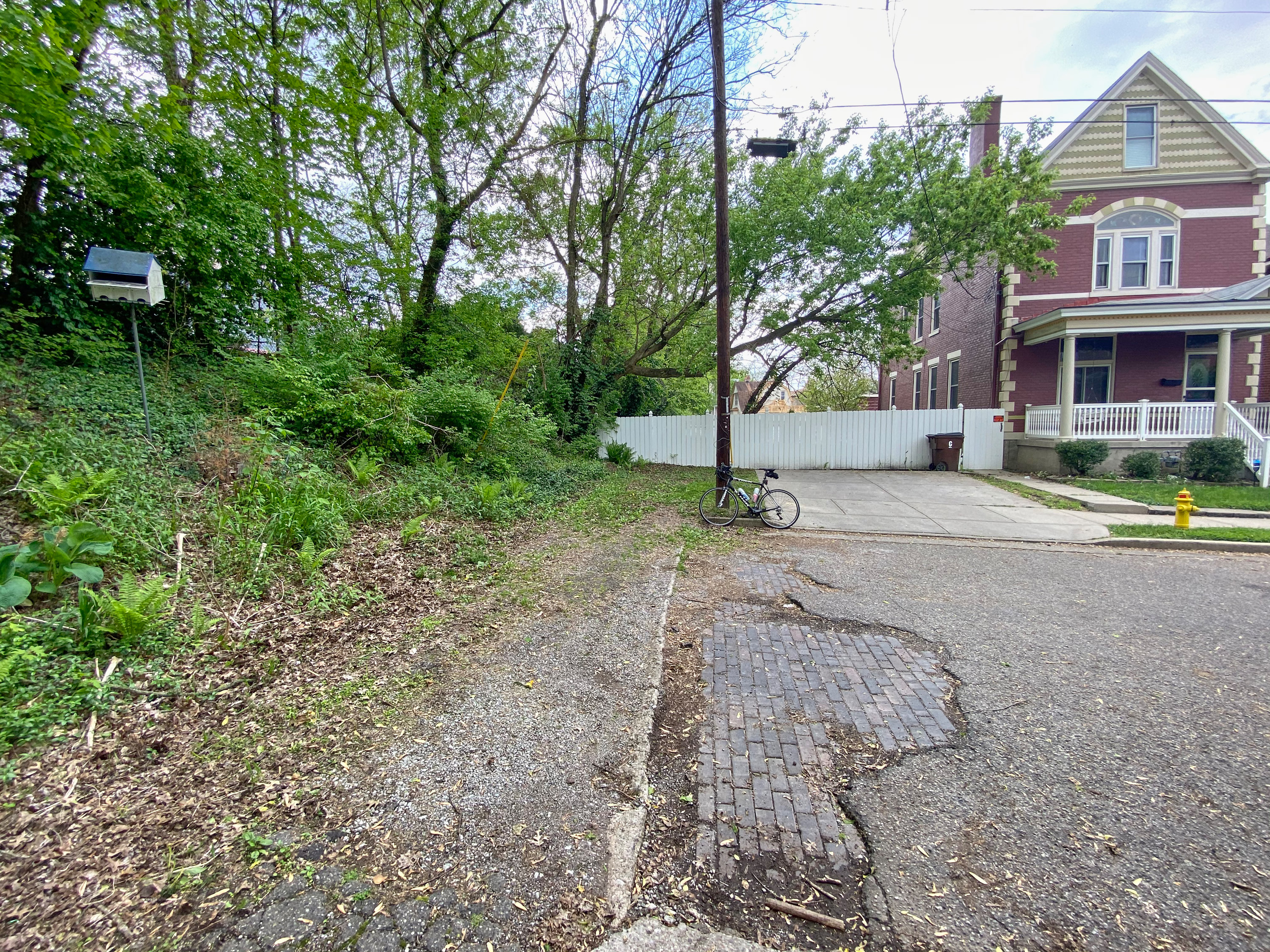 Route 8 Eastern Avenue right-of-way at the end of Maryland Avenue in Covington near the edge of Wallace Woods, looking west.