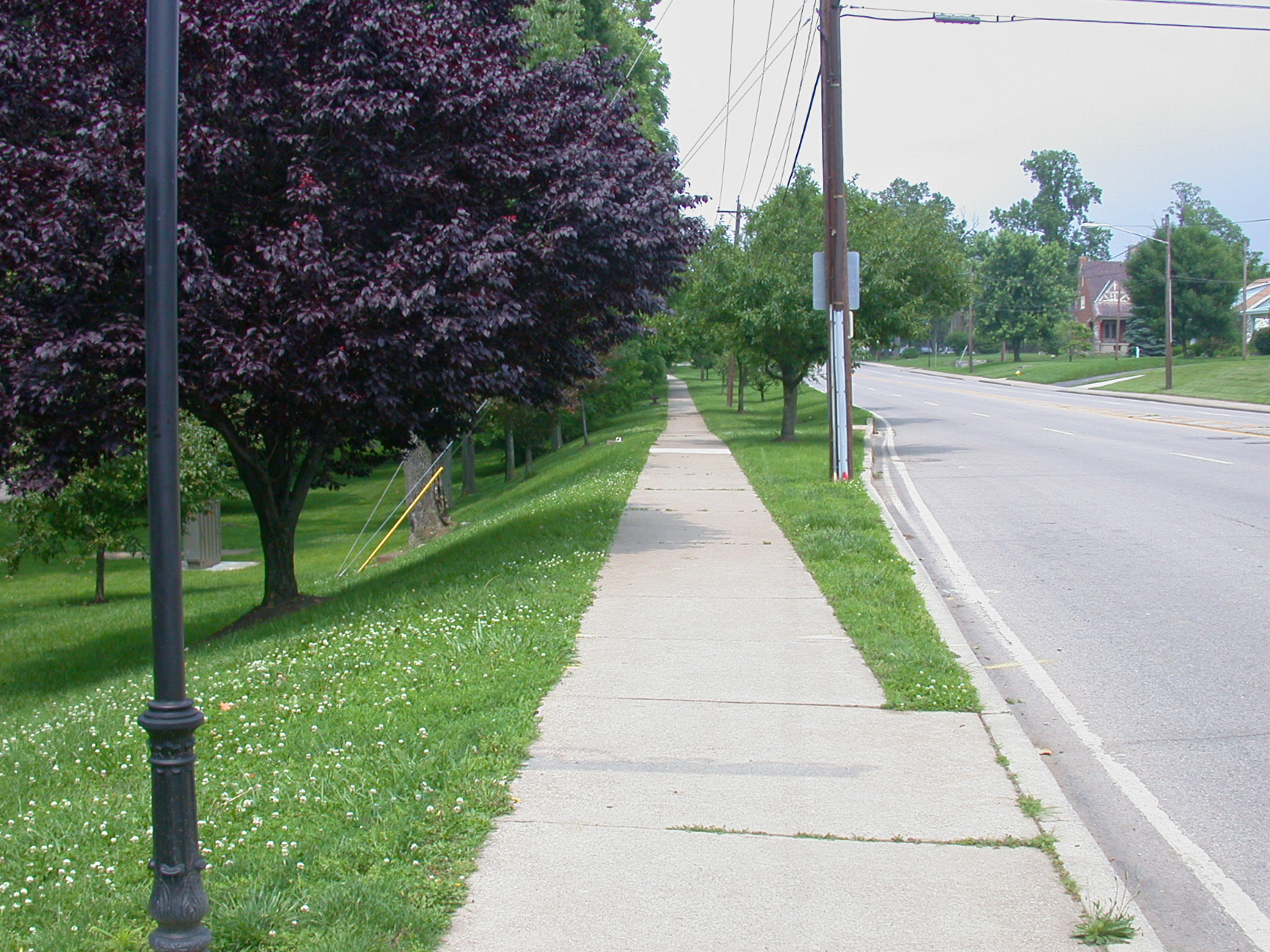 Ft. Mitchell Line ROW along the side of Dixie Highway in South Ft. Mitchell, looking northeast from Cornell Avenue. Road widening has begun to eat away at the ROW.