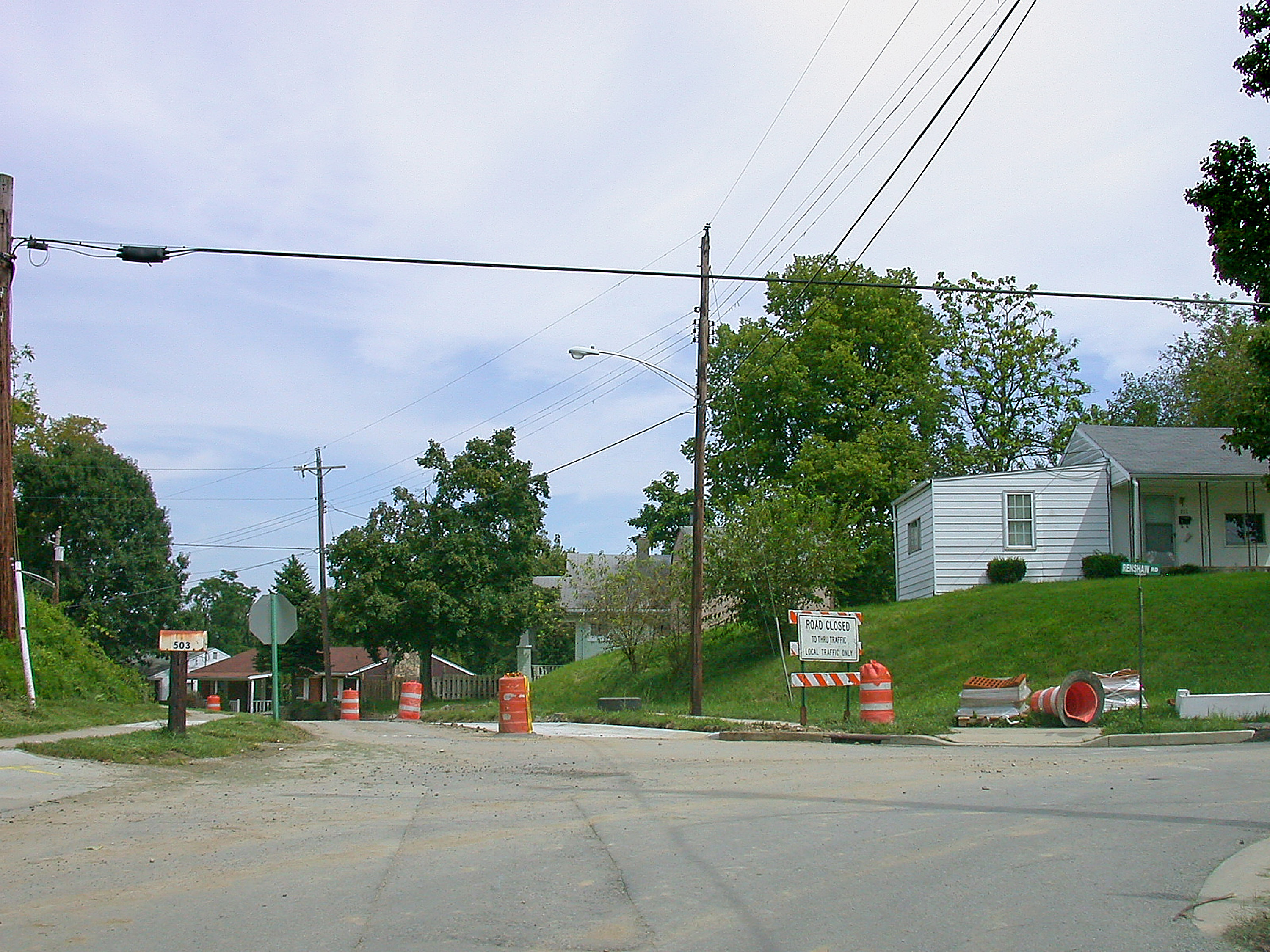 Approximate location of the Renshaw loop in Highland Heights, looking northeast along Main Avenue. I could not find any trace of the streetcar line in this area, despite road construction.