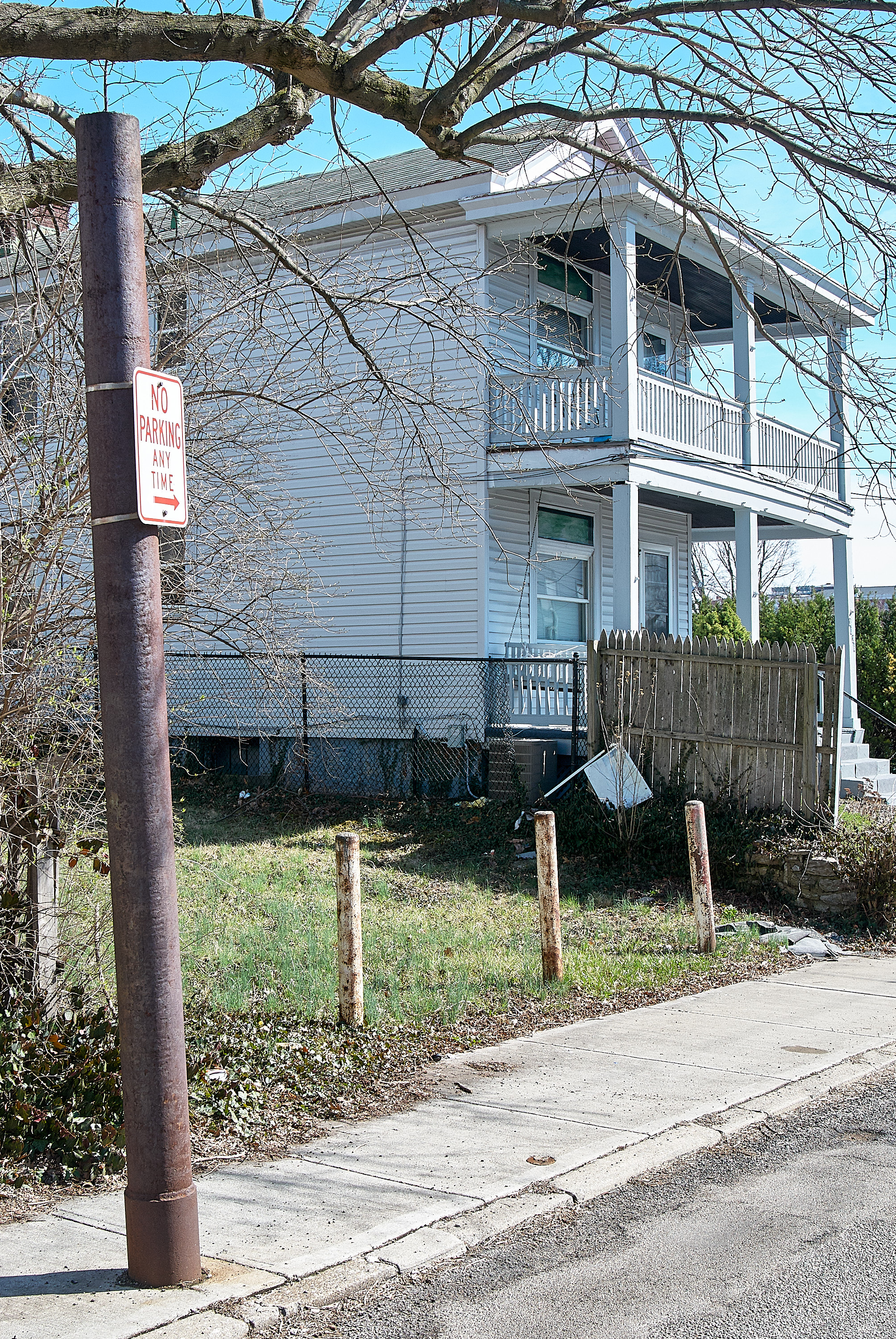 Location of the O'Bryonville substation on O'Bryon Street, looking southeast towards Madison Road. The pole with the no parking sign is the only evidence of the substation that used to be here. To the right of the house is the large parking lot at O'Bryon Street and Madison Road. The substation itself would have been off to the left of this location. The house on the right of the last photo was likely on this vacant lot with the posts in the grass.