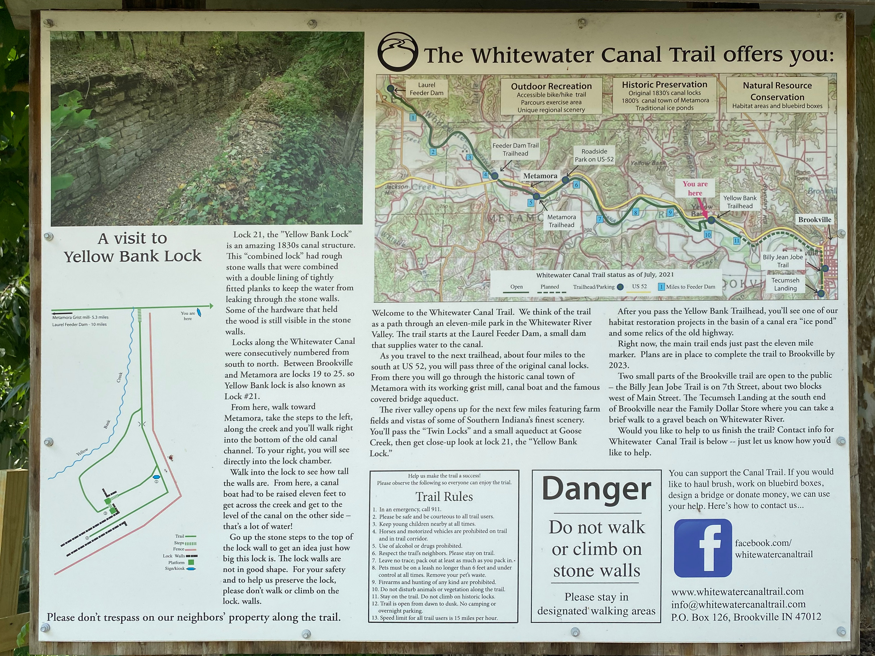 Whitewater Canal Trail information board at the Yellowbank trailhead.