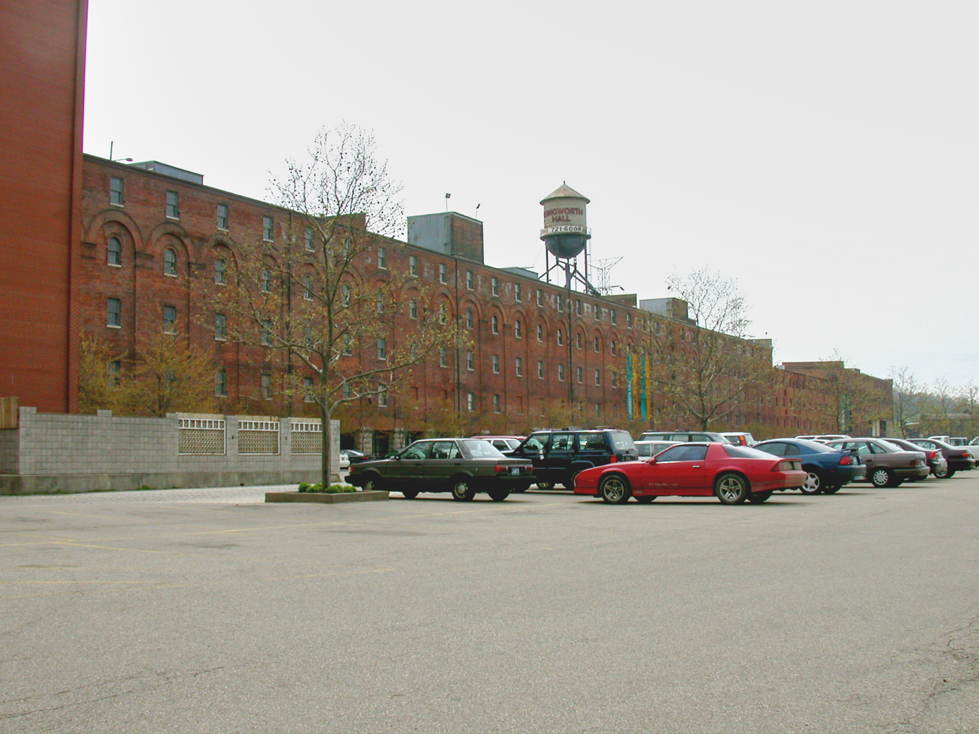 Longworth Hall on Pete Rose Way just west of I-75. This huge building was once a B&O freight warehouse. There were yards at the location of the parking lot. The east side of the building was demolished and partially rebuilt because of construction for the Brent Spence Bridge in the 1960s.