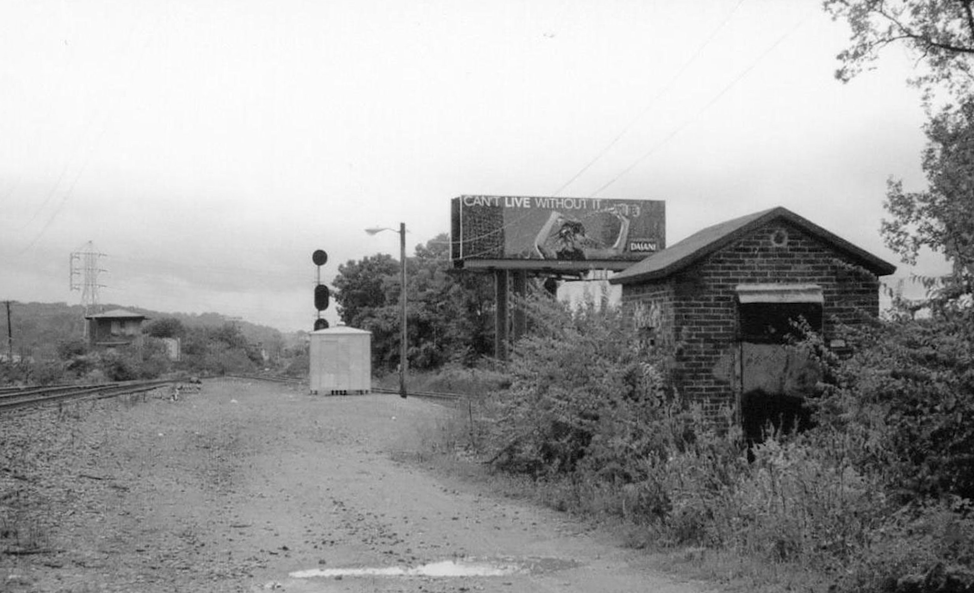 The buildings at NA Tower, looking southwest near the end of Railroad Ave. in St. Bernard. The B&O (CSX) line is to the left of photo, Big Four (NS) to the right. NA Tower itself is located at left.