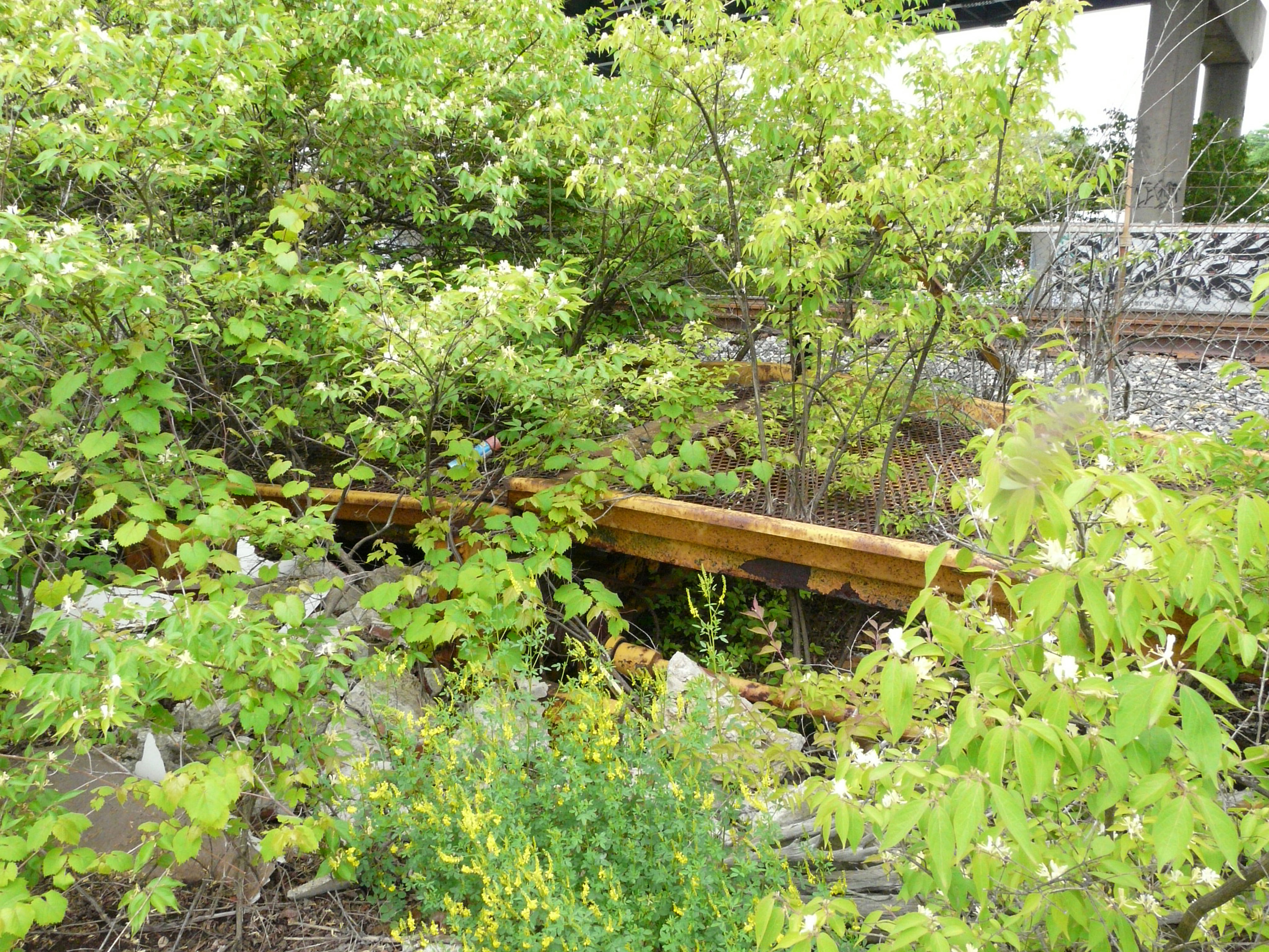 The west loading ramp at the GM loading platform. The B&O mailine is in the background beyond the fence.