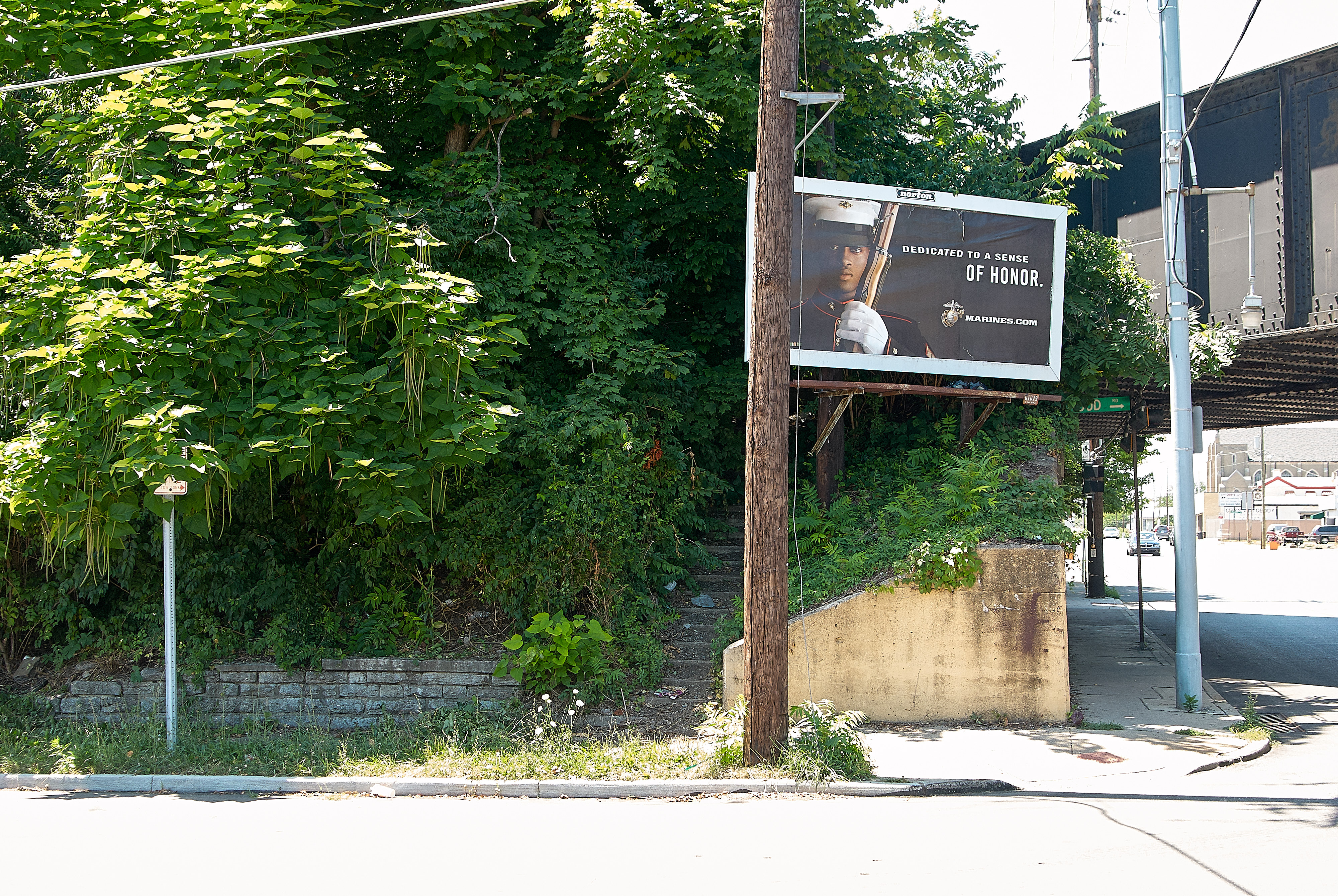 Long abandoned stairs up to the B&O line at Madison and Stafford in Madisonville, looking west. There was a small commuter station called East Madisonville here which these stairs served.