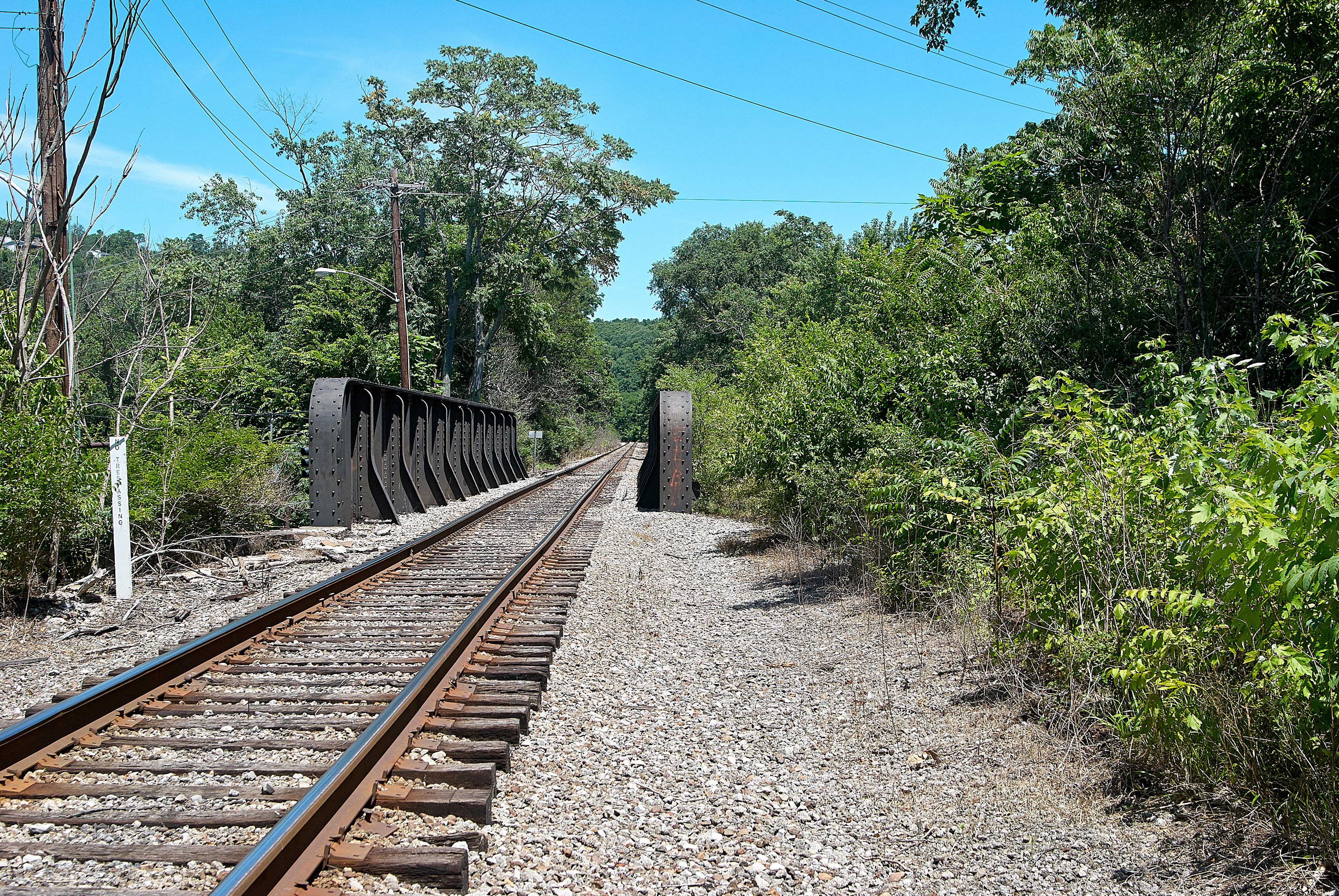 Approaching the B&O's bridge over Madison Road in Madisonville, looking northeast. There's another bridge to the right in the brush for a second track, long gone. The small East Madisonville commuter station was originally to the left and somewhat behind the vantage point of this photo.