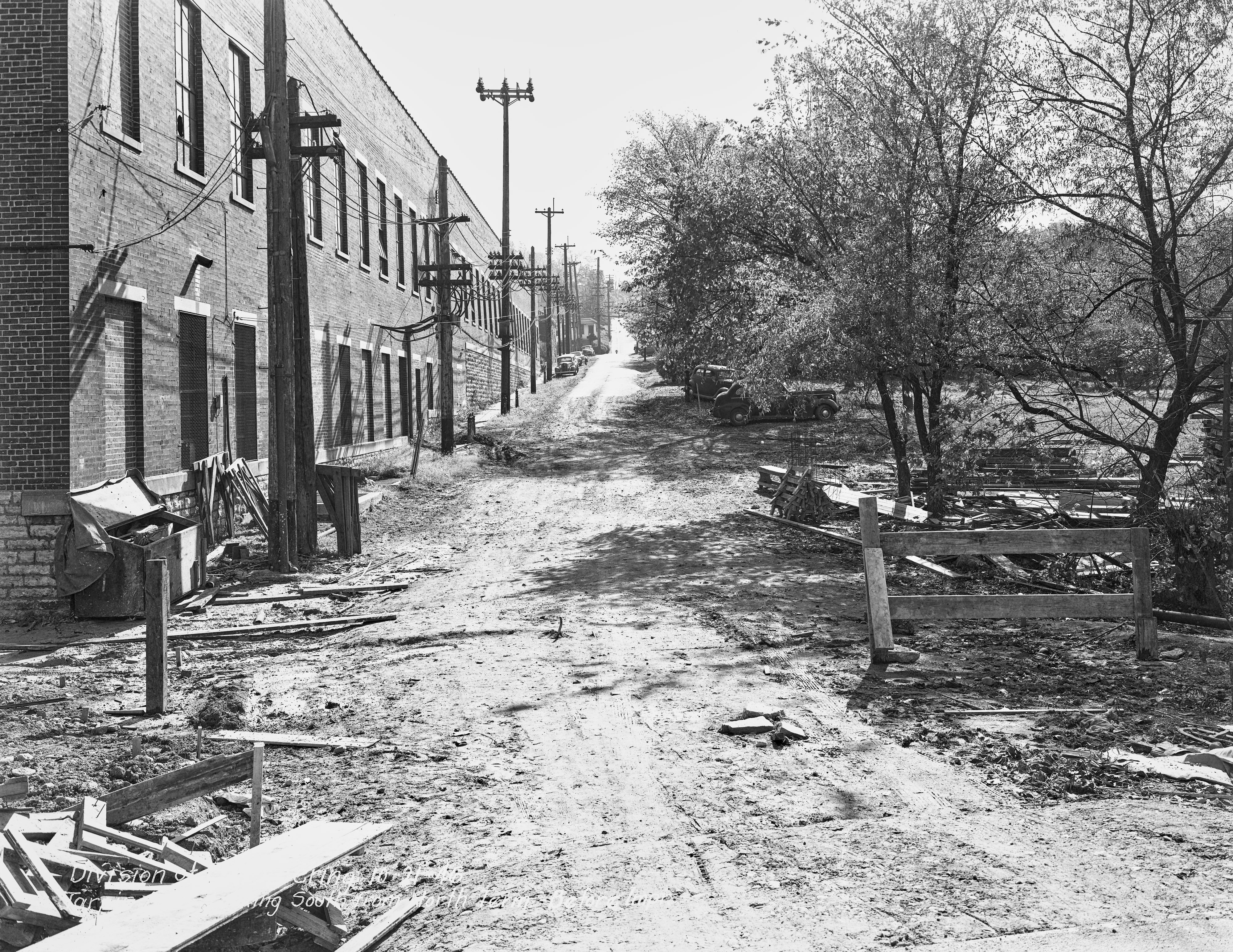 Historic photo of Tarpis Avenue and the Hyde Park Carbarns, looking south from near the end of the street. From the University of Cincinnati Library Digital Resource Commons, Street Construction and Improvements collection.