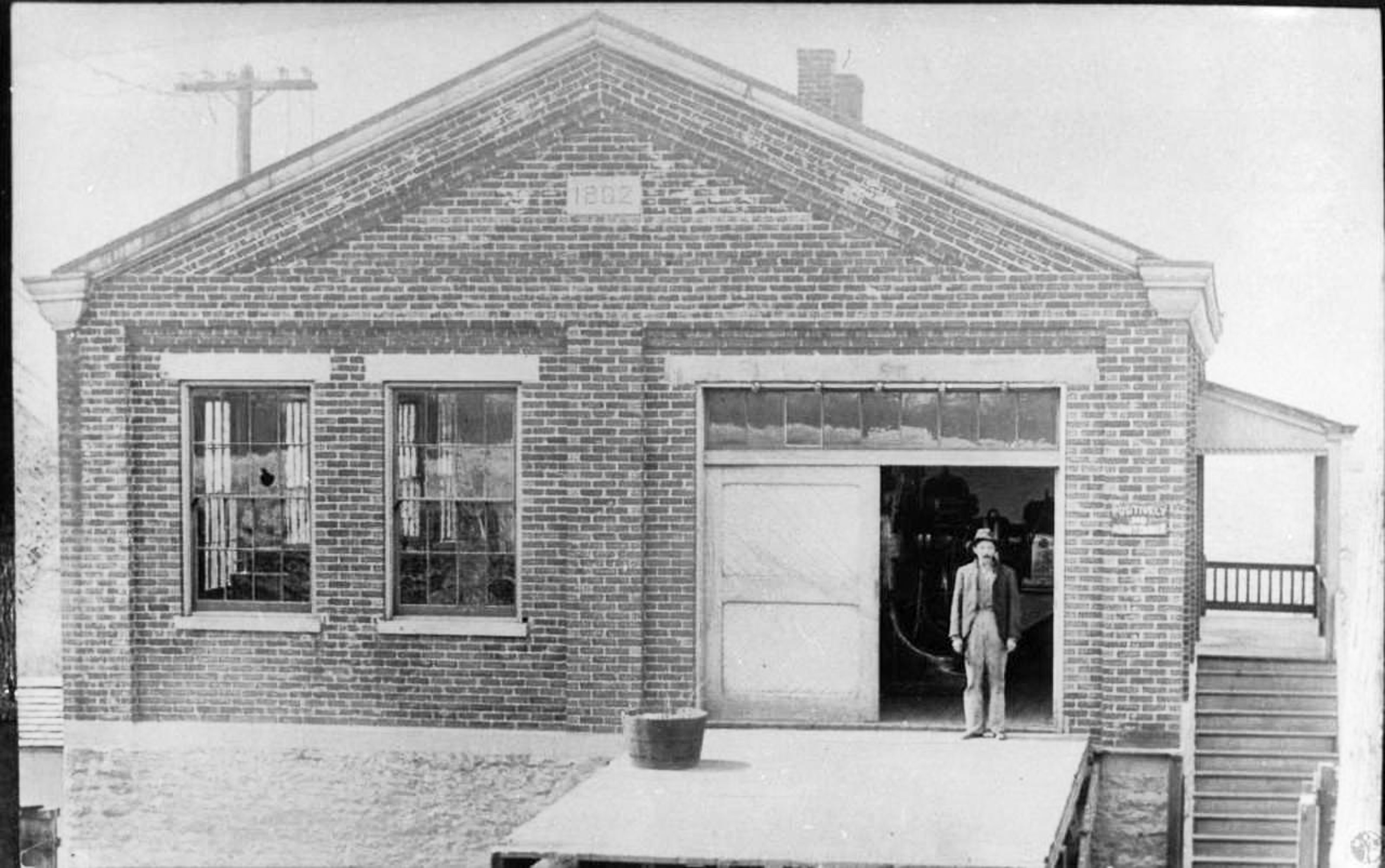 Historic photo of the Ft. Mitchell line substation on Dixie Highway, looking west across the street from Highland Cemetery.