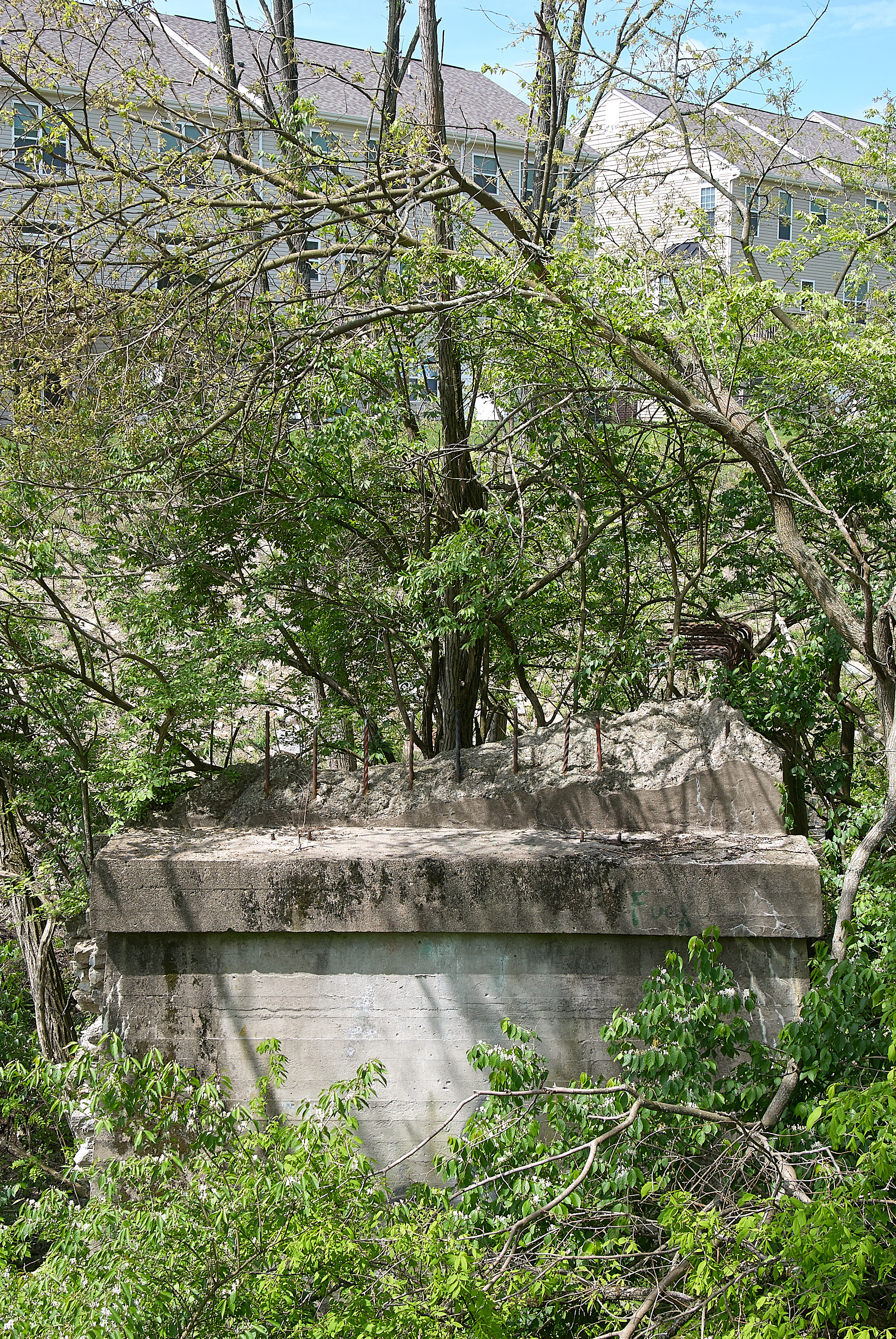 Cincinnati & Westwood bridge in Westwood, looking west. This pier separated the two spans, but the far abutment (on the other side of the creek) is gone.
